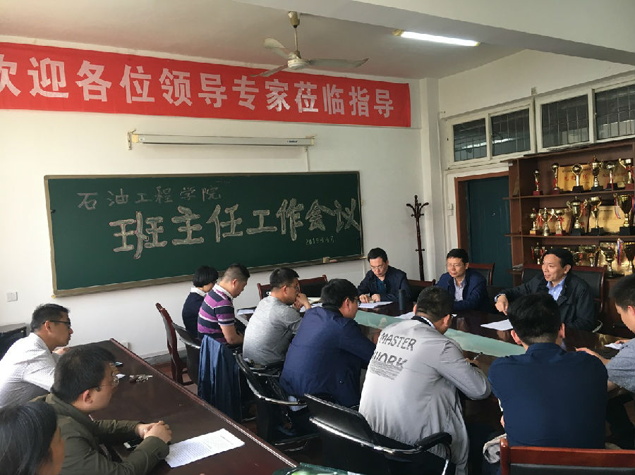 4月9日下午石油工程学院党委在1#教学楼607会议室召开了2018年本科生班主任工作会议,学院党委书记马勇老师、院长周德胜老师、党委副书记张建高老师出席会议并指导工作,学院学生管理办公室、教学管理办公室全体人员以及56个本科班级的班主任老师全程参加,会议由学生管理办公室主任孙会珠主持。
