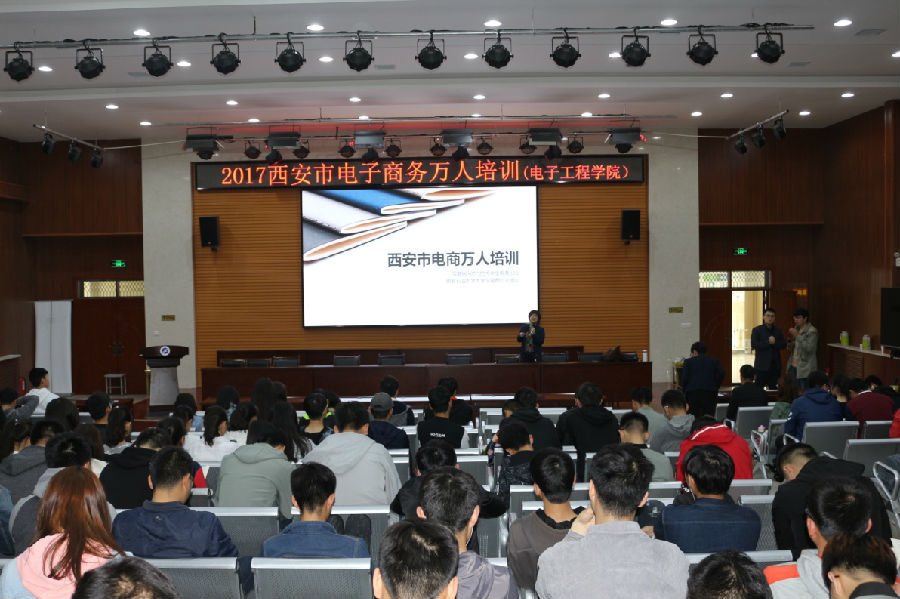 为顺应时代发展,了解电子商务知识及其体系结构,掌握一定的电子商务技能,拓宽同学们的视野, 3月24日早9点,电子工程学院组织学生在人文经管楼118多功能报告厅参加了由西安市商务局举办,西安深蓝软件开发实践培训中心承办的“万人电商培训”讲座。此次讲座由西安深蓝软件开发实践培训中心何娟老师及谢晶老师担任主讲,电子工程学院共计300余名学生参加了此次讲座。