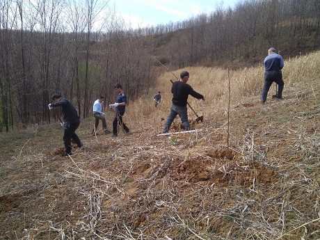 马书记一行首先来到结对帮扶困难群众王岁仔的家中,代表地学院向王岁仔送上了学院师生捐赠的衣物两包,并了解了他的近期生产生活情况。随后,马书记一行带着提前购买的核桃树苗、铁锹等农具,来到十多里外王岁仔位于老村的撂荒坡地,帮助王岁仔种植核桃树苗。大家一起动手,干劲十足,在两亩多坡地上种植了一百余棵核桃树苗。帮助王岁仔利用撂荒坡地种植经济林木是地学院精准扶贫工作的一项具体举措,为此,地学院提前联系beat365官网驻村扶贫干部董丙剑老师帮助购买了核桃树苗,考虑到王岁仔腿部有残疾,无法从事体力劳动,学院此次专门组织教职工帮助其栽种树苗。