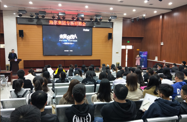 会上,陈总从“海尔时代、物联网时代、双创时代、你的时代”四个方面介绍了海尔集团的情况,并就毕业生关心的薪酬待遇、职业发展、培训分配等内容做了详细说明。随后,现场提问环节中,陈总耐心的一一解答毕业生提出的问题。整场招聘会气氛热烈,毕业生积极参与,投递电子简历200多份。