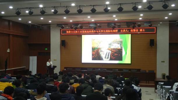 赵黎安博士首先从加拿大阿尔贝塔省的能源情况出发,简要介绍了CEPro公司的发展历程及合作伙伴,并通过石油行业最著名的三个数据库让大家认识到了数据共享带来的优势。紧接着赵博士从土壤恢复技术,提高天然气采收率以及油气资产的规程标准三个方面重点介绍了CEPro公司的主要业务,给我们展示了公司广阔的发展前景以及良好的合作愿望。最后赵博士从公司雇主的角度出发,提出了大学生具有创造性、领导力、合作性和团队协作精神的重要性,并鼓励学生都要做一个富有激情、和善诚信、专业敬业和善于学习的人。报告会结束后,赵黎安博士与现场师生进行互动,并耐心回答了同学们提出的问题。整场报告在同学们的热烈掌声中结束。