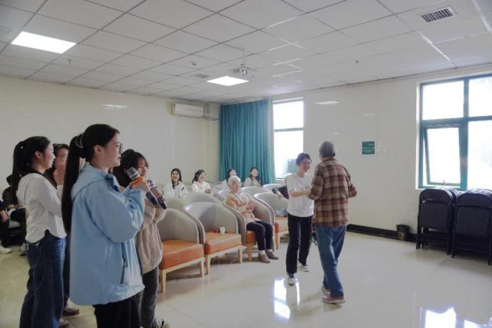 学生党员们为养老院购买了米、面、油等慰问品,为老人们送去一份关爱与温暖,同时为老人们献上了诗歌朗诵、歌舞等文艺节目,让老人们感受青年人的活力与热情。同学们还走入老人们的房间,与他们亲切交谈,老人们也分享了他们的人身阅历和生活学习感悟,开展了心灵的交流和情感的传递。