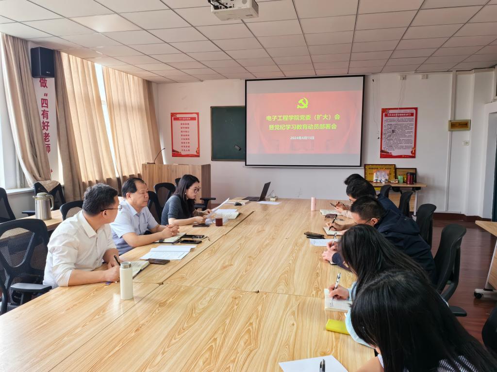 为深入学习贯彻习近平总书记关于党纪学习教育的重要讲话和重要指示精神,落实学校党委在党纪学习教育动员部署会上的要求,4月15日下午,电子工程学院召开党委(扩大)会暨党纪学习教育动员部署会。电子工程学院党委书记潘娜主持会议并作动员讲话,学院全体党委委员、党支部书记代表参加会议。