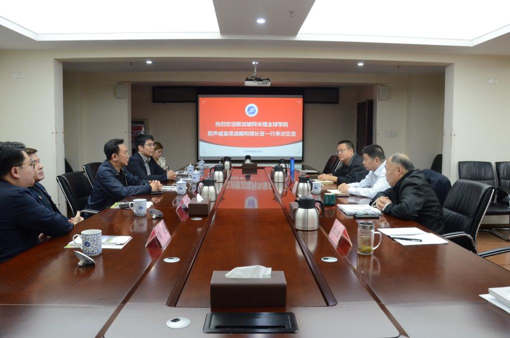 4月12日下午,新加坡阿米提全球学院区域首席执行官钟吉良教授、首席战略和增长官蔡生威博士等一行6人来beat365官网继续教育学院座谈交流。继续教育学院党总支书记耿岭主持座谈会,副院长吴民生、刘小波及相关科室负责人,国际教育学院(丝路能源学院)相关科室负责人参加座谈会。