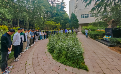 2024年4月16日上午,石油工程学院在雁塔校区春雨苑举办唐春雨烈士逝世35周年追思活动。辅导员宋兴淼及学生代表共计50余人参加了活动。