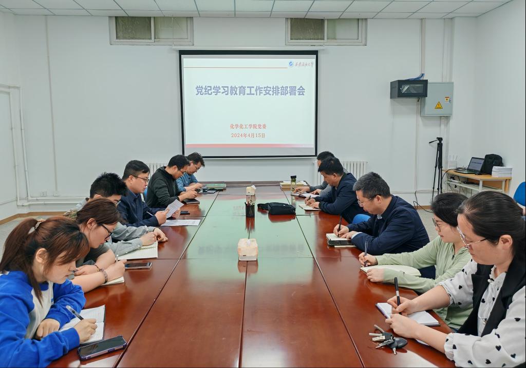 4月15日下午,化学化工学院在雁塔校区学院231会议室召开党委(扩大)会议,专题研究部署党纪学习教育工作。学院党委委员、各党支部书记参加了会议。会议由学院党委副书记、纪检委员祁帆主持。