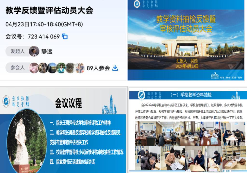 4月23日,经济管理学院召开全院教职工会议,反馈近期学校教学资料抽检专家意见,开展审核评估专家进校前工作动员。