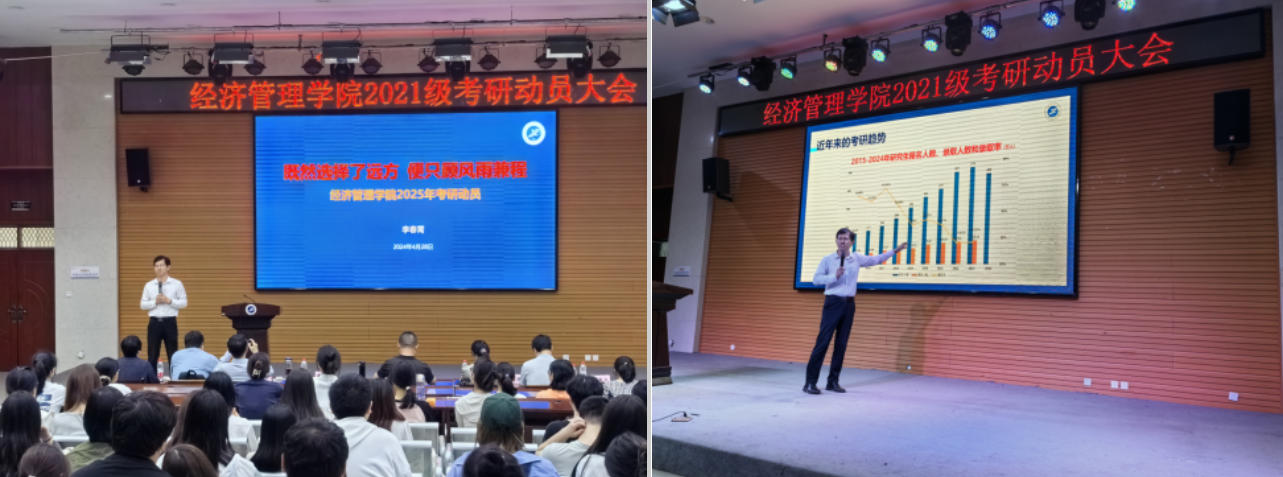 一直以来,经济管理学院高度重视学生考研指导帮扶工作,关注学生的备考情况和实际需求,坚持考研全过程指导不停歇、服务关心不断线,做好学生复习备考道路上的导航者、陪伴者、守护者。此次考研动员大会的顺利召开,激发了学生们考研的内生动力,增强了考研信心,鼓舞了考研士气,营造了积极争先、比学赶超的良好学习氛围。