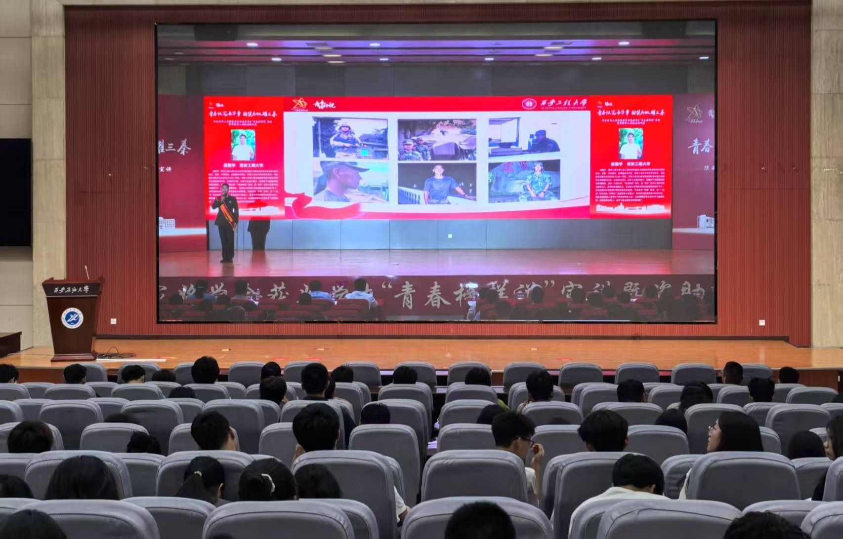宣讲环节,西安理工大学耿晶以 “追光之旅” 分享竞赛逐梦历程,呼吁青年扎根祖国需要之处;西安工程大学梁振宇讲述退役复学后的坚守担当,榜样们用奋斗故事传递着拼搏向上的精神力量。