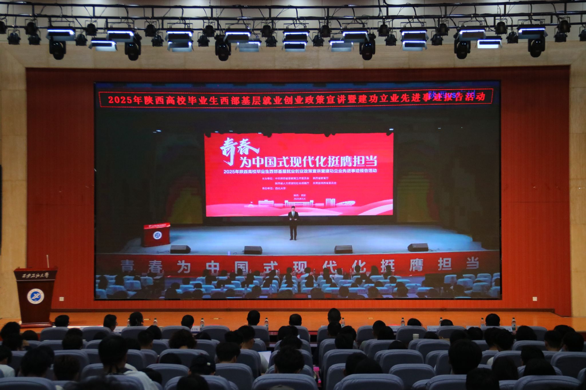 5月29日下午,2025年陕西高校毕业生西部基层就业创业政策宣讲暨建功立业先进事迹报告活动省级报告会在西北大学举办。中共陕西省委教育工委副书记王海波、共青团陕西省委员会副书记惠旋、陕西省人才交流中心副主任李阳出席报告会。beat365官网在鄠邑校弘石学术报告厅设立分会场,副校长赵健,党委学生工作部、校团委、各院(系)主管学生工作负责人、辅导员代表及学生代表400余人参加了报告会。