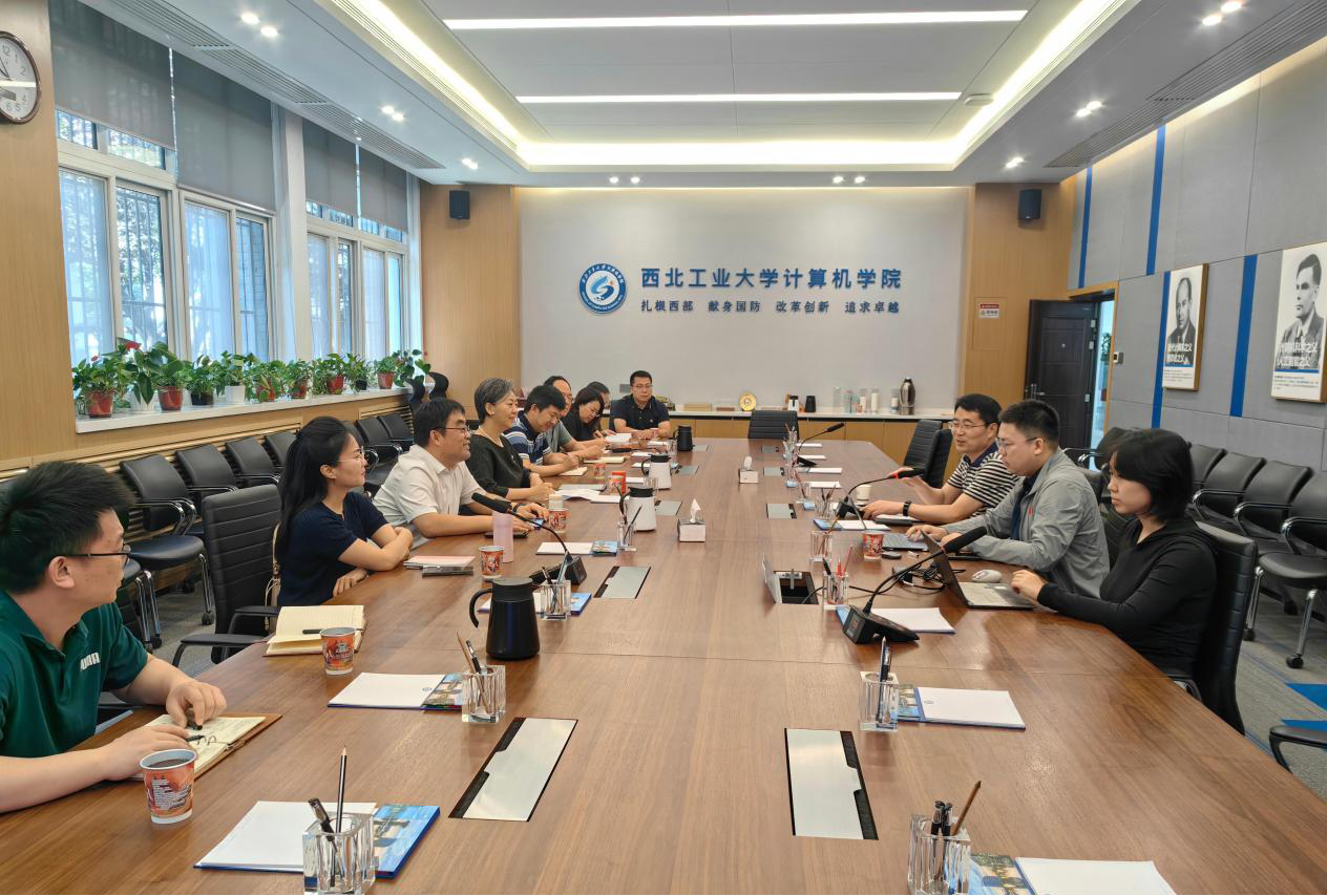 李春科对高黎、宋立军一行表示热烈欢迎。他介绍了西北工业大学及计算机学院发展概况,重点分享了中亚办学经验。对照学院未来五年发展的“127”目标举措,即“锚定1个目标、推进2大战略、实施好7大工程”和2035年建成“中国特色、世界一流”计算机学科的工作愿景,以及“天下工大、世界三航”的学校远景目标,结合哈萨克斯坦分校建设经验,重点围绕党委顶层设计和布局规划、学生实力和求学意愿、国情差异和学制衔接、资产归属和配置管理等四个方面作了交流。崔禾磊结合学生国际化创新培养的模式和路径,介绍了中亚合作办学的具体措施和成效。