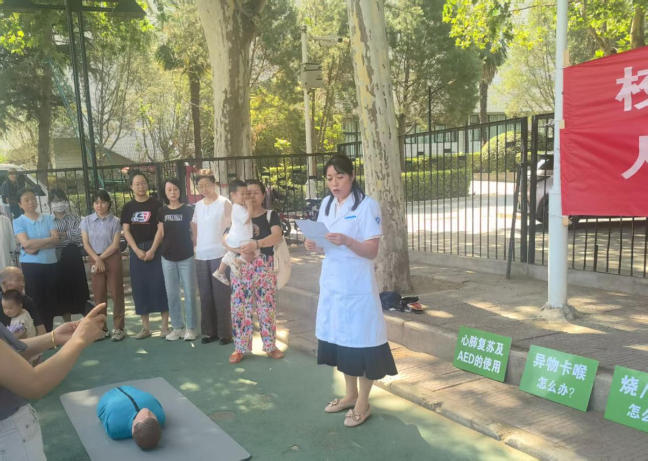 培训活动在雁塔校区足球场南侧举行,吸引了众多职工和商户踊跃参与。校医院的专业医护人员担任培训讲师,他们用丰富的临床经验和扎实的专业知识,为我们带来一场生动而深入的急救知识盛宴。培训内容涵盖心肺复苏及AED的使用、异物卡喉、烧烫伤、外伤创伤止血包扎救法等常见且关键的急救技能。