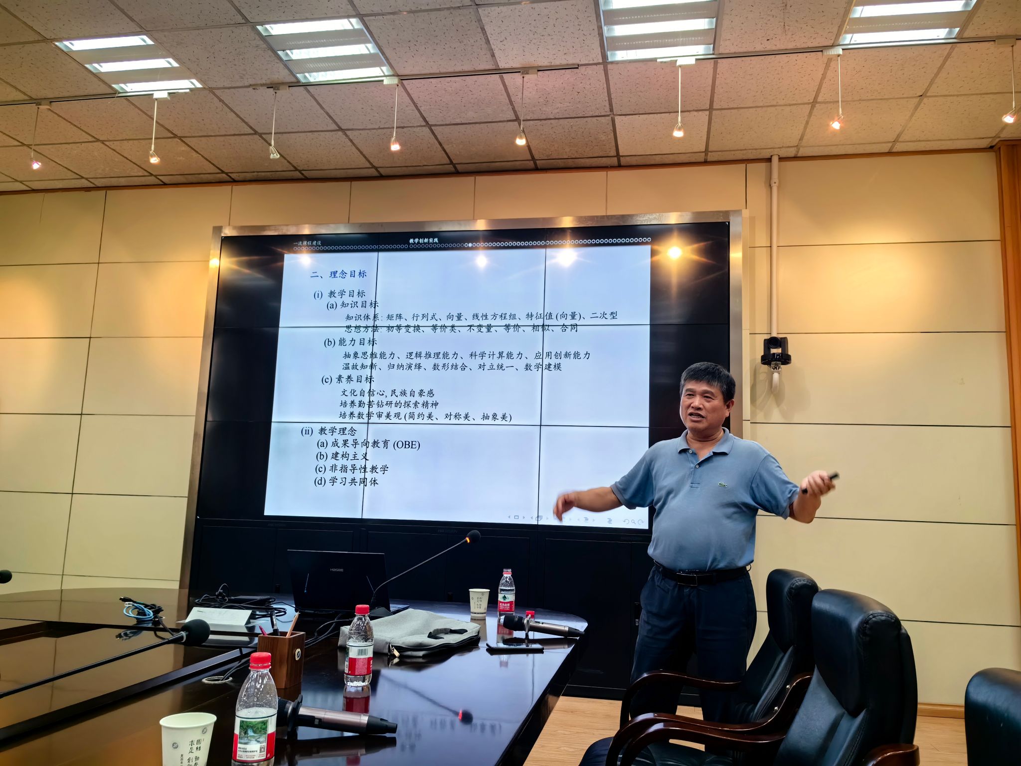 报告会上,陈建龙教授分享了国家级课程建设、精品教材建设、青年教师教学竞赛、教学创新大赛的历程、经验与思考,同时对课程思政怎样融入课堂教学与一流课程申报提出了一些很好的建议,并分享了团队在线性代数课程资源开发方面的经验。他强调,东南大学线性代数课程教学团队在编写线性代数教材时,注重理论与实际相结合,同时也融入了Matlab软件、数学建模思想、学科前沿知识和实际应用场景,使学生能更好地理解抽象的数学概念。教学团队建设了丰富的多媒体教学资源,包括先修课程的录制、精心制作的教学视频、在线课程平台等。随后,陈建龙教授分享了他对AI辅助教学的思考与探索。