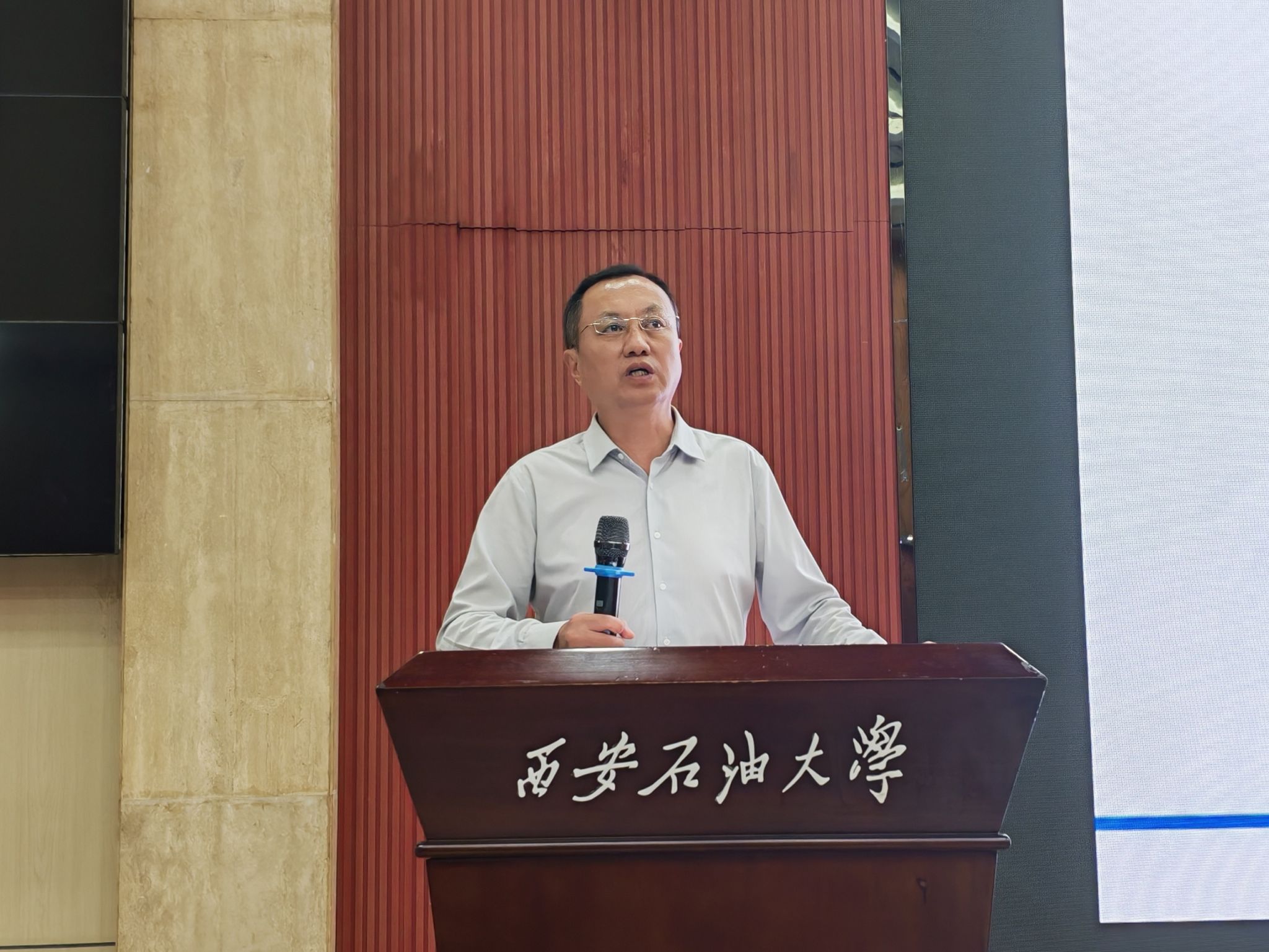 6月25日晚,副校长张荣军在鄠邑校区弘石报告厅为人文学院学生讲授题为“石油行业发展与石油学子使命担当”的专题思政课,人文学院学生工作干部、300余名本科生参加。
