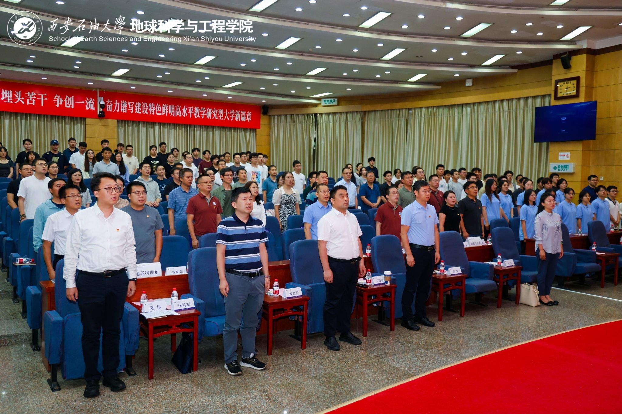 在庆祝中国共产党成立104周年,深入贯彻中央八项规定精神学习教育走深走实和贯彻落实学校“三个年”建设部署之际,6月30日下午,地球科学与工程学院党委在雁塔校区学术报告厅举行“智慧教育 你我同行”同上一堂思政课暨深入贯彻中央八项规定精神学习教育主题党日活动。校党委副书记、校长王进富出席活动并讲授思政课暨学习教育专题党课。学院党政领导班子成员,党委委员、理论学习中心组成员,各系党支部书记、主任,师生员工及党员代表等200余人参加。活动由学院党委书记高黎主持。