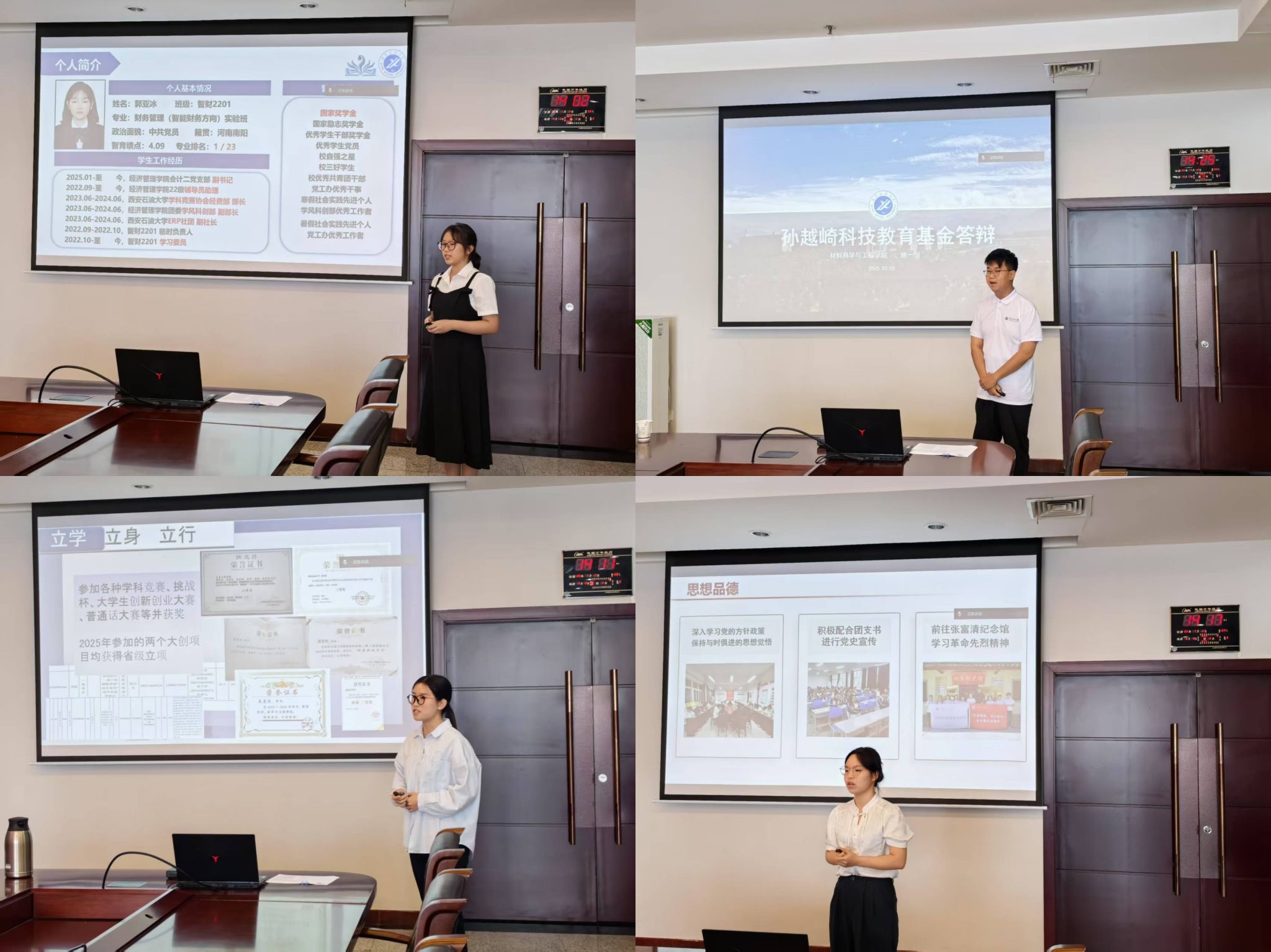 本次评审会严格依照《孙越崎科技教育基金奖励办法》及学校规定,秉持公平、公正、公开原则,围绕思想品德、学业成绩、学术成果、科研能力及综合素养,对各院(系)推荐学生展开综合评审。候选人就思想品德、学习经历、学科竞赛、科研成果、社会实践、志愿活动等方面进行展示。评委认真聆听、审阅材料,结合现场提问与候选人综合表现,最终确定拟获奖名单并公示。