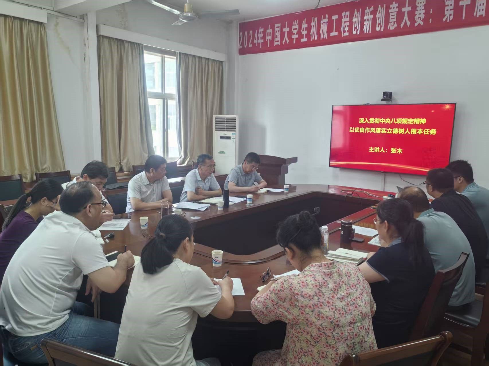近日,材料科学与工程学院党委理论学习中心组学习会在雁塔校区四号实验楼312会议室举行。校党委副书记张木出席会议,并为与会人员讲授“深入贯彻中央八项规定精神,以优良作风落实立德树人根本任务”专题党课。会议由学院党委书记耿岭主持。