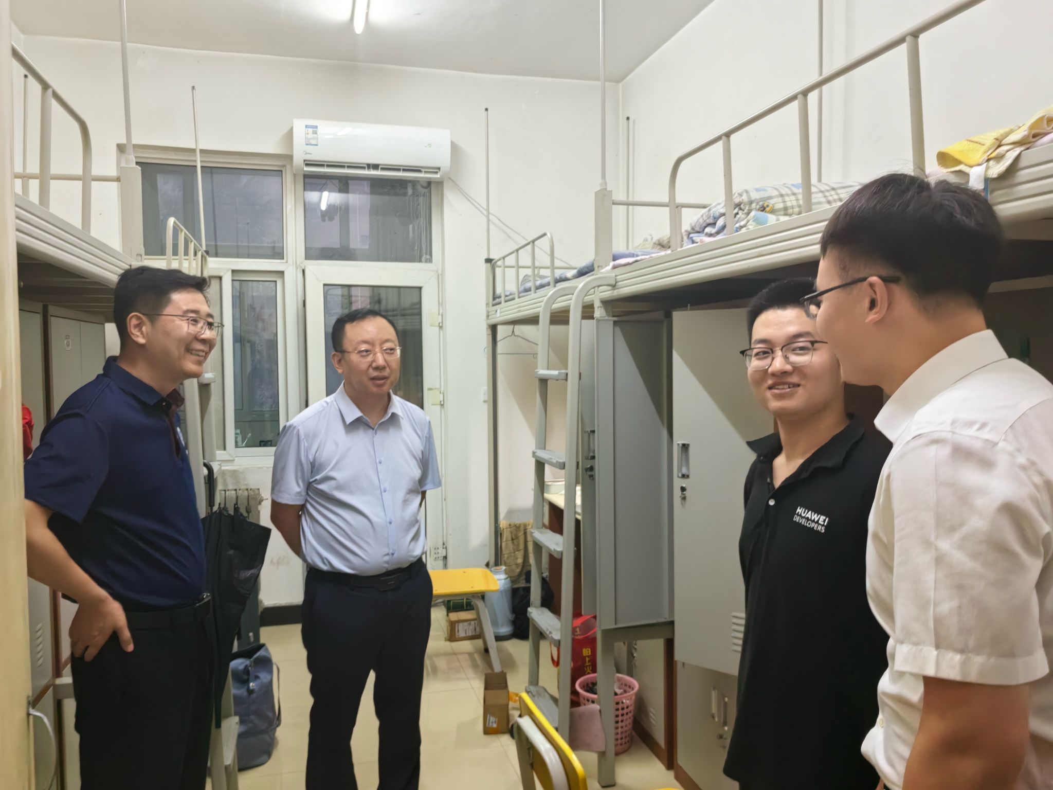 为进一步了解学生入住情况,帮助同学们尽快适应新环境,学生工作部(处)相关负责人和学工干部多次深入学生宿舍,看望慰问正在收拾内务的同学们,详细了解同学们搬迁后的生活安排与住宿感受,询问大家在新环境中是否存在困难,并鼓励大家保持良好心态,积极投入到接下来的学习与生活中。