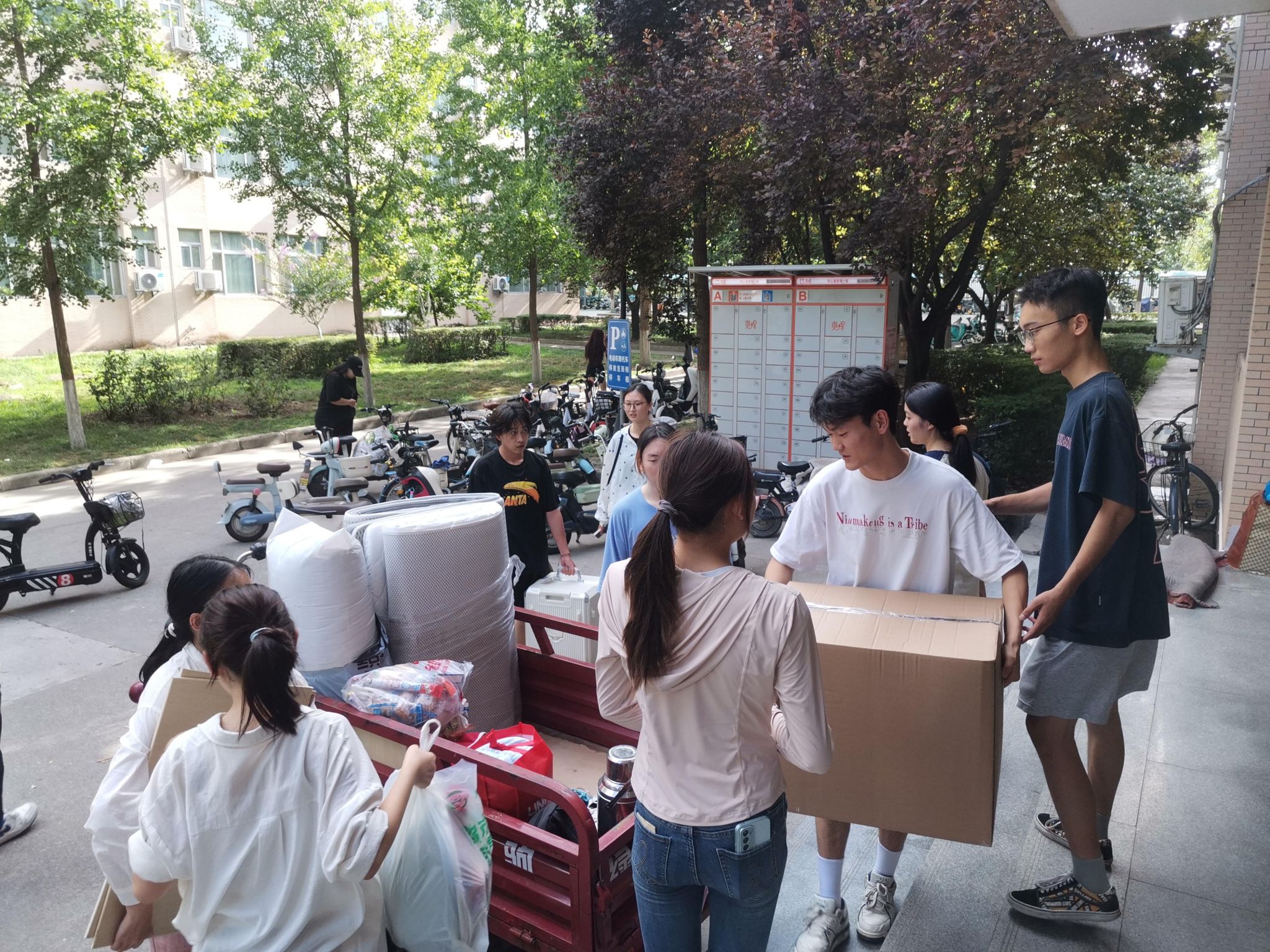 学校共租赁16辆搬运车帮助同学搬迁,现场设置“免费饮用水供应点”、“医疗服务点”、“解暑绿豆汤”供应点等暖心举措。各院(系)分别通过召开学生搬迁动员会、学生干部会议、成立搬迁工作志愿服务队等形式,深入了解学生需求,聚焦解决学生关切的困难和问题,为顺利搬迁奠定了基础,搬迁现场到处充满着温馨和谐的气氛。