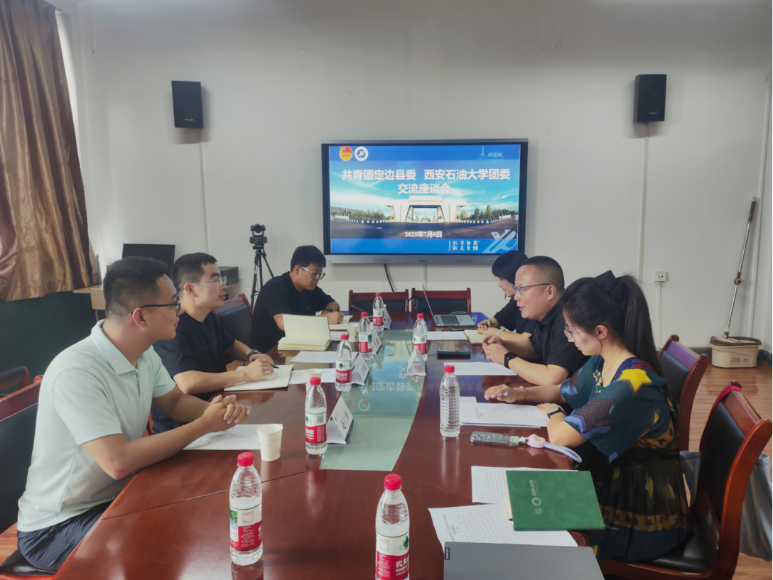 为进一步加强校地共青团组织的交流合作,促进工作资源共享,推动共青团工作高质量发展,7月8日上午,共青团定边县委与校团委交流座谈会在雁塔校区华油能源楼813会议室举行,共青团定边县委书记王治瑞、副书记车路及双方相关工作人员参加座谈会,会议由校团委书记王刚主持。