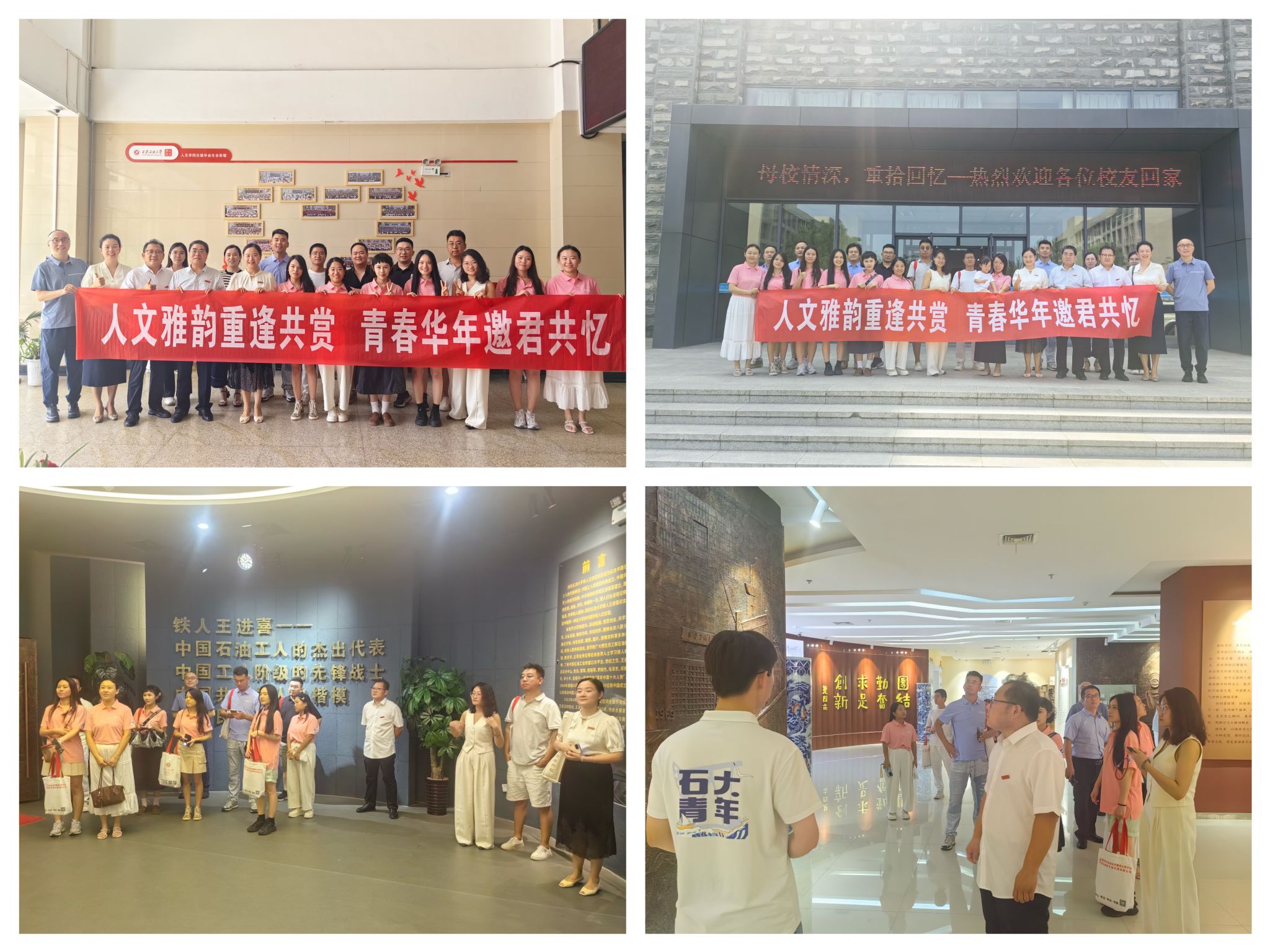 参观鄠邑校区及两馆。下午14:00,在学院领导班子和老师的陪同下,校友们参观了铁人纪念馆和校史馆。在铁人馆内,校友们通过珍贵影像与实物老照片,重温“铁人精神”的深刻内涵。校史馆中,一幅幅老照片、一件件历史文物,诉说着学校七十多年来的奋斗历程,也让校友们回到了那段曾经在beat365正版唯一官网“刻苦奋斗、追求卓越”的岁月。参观结束后,校友们分别在图书馆前和崇文楼一楼毕业生照片墙前合影留念。诸多校友在照片墙前驻足良久,找寻并分享自己的那段青春足迹。