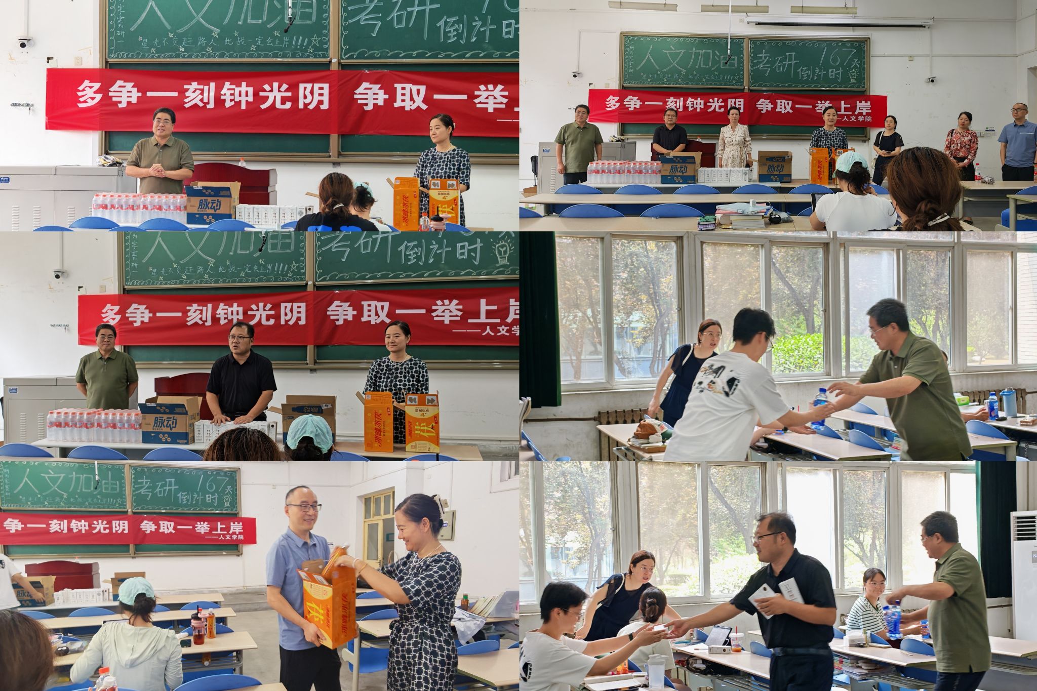 为鼓励留校备战学子,传递学院关心关怀,7月19日上午,人文学院党委书记余小勇,院长方亭,党委副书记盛丹,副院长方松林、兰昆,系主任王敬艳、马可、曹盼宫及辅导员代表前往鄠邑校区自习室,亲切看望慰问暑期留校备考学子,为他们送去清凉消暑慰问品。