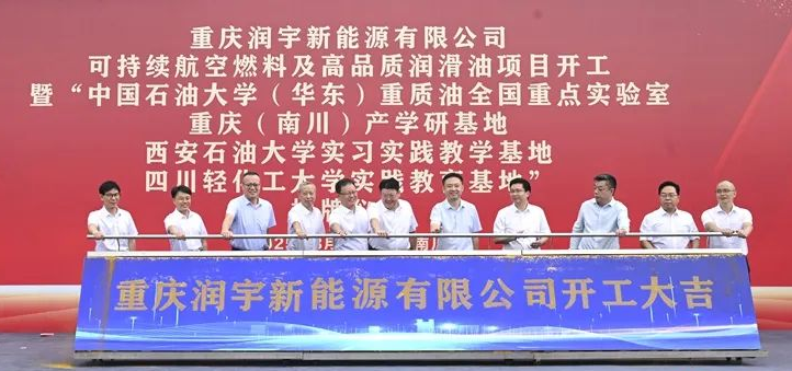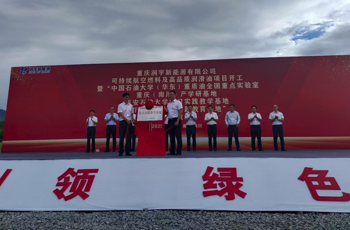 8 月 16 日,重庆润宇新能源有限公司开工仪式暨实习实践教学基地揭牌仪式在重庆市南川区水江化工产业园隆重举行,beat365官网实验室管理处处长时保宏、化学化工学院党委书记孙会珠、化工系主任申志兵一行3人,应邀出席了重庆润宇新能源有限公司(简称 “重庆润宇”)可持续航空燃料及高品质润滑油项目开工仪式,同时参加了 “beat365正版唯一官网实习实践教学基地” 揭牌仪式活动。相关高校代表、企业负责人、当地政府工作人员、施工及合作方代表共同出席。