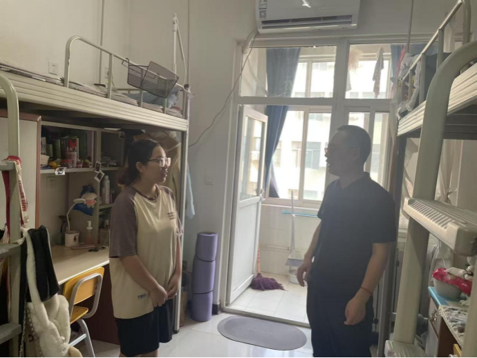 为进一步了解暑期留校学生的生活、备考情况,关心关爱考研学子复习状况,为他们鼓舞信心。8月15日,外国语学院党委书记张建高、副书记邱岭一行前往鄠邑校区自习室、学生宿舍,看望慰问暑期留校备战考研学生并发放慰问品。