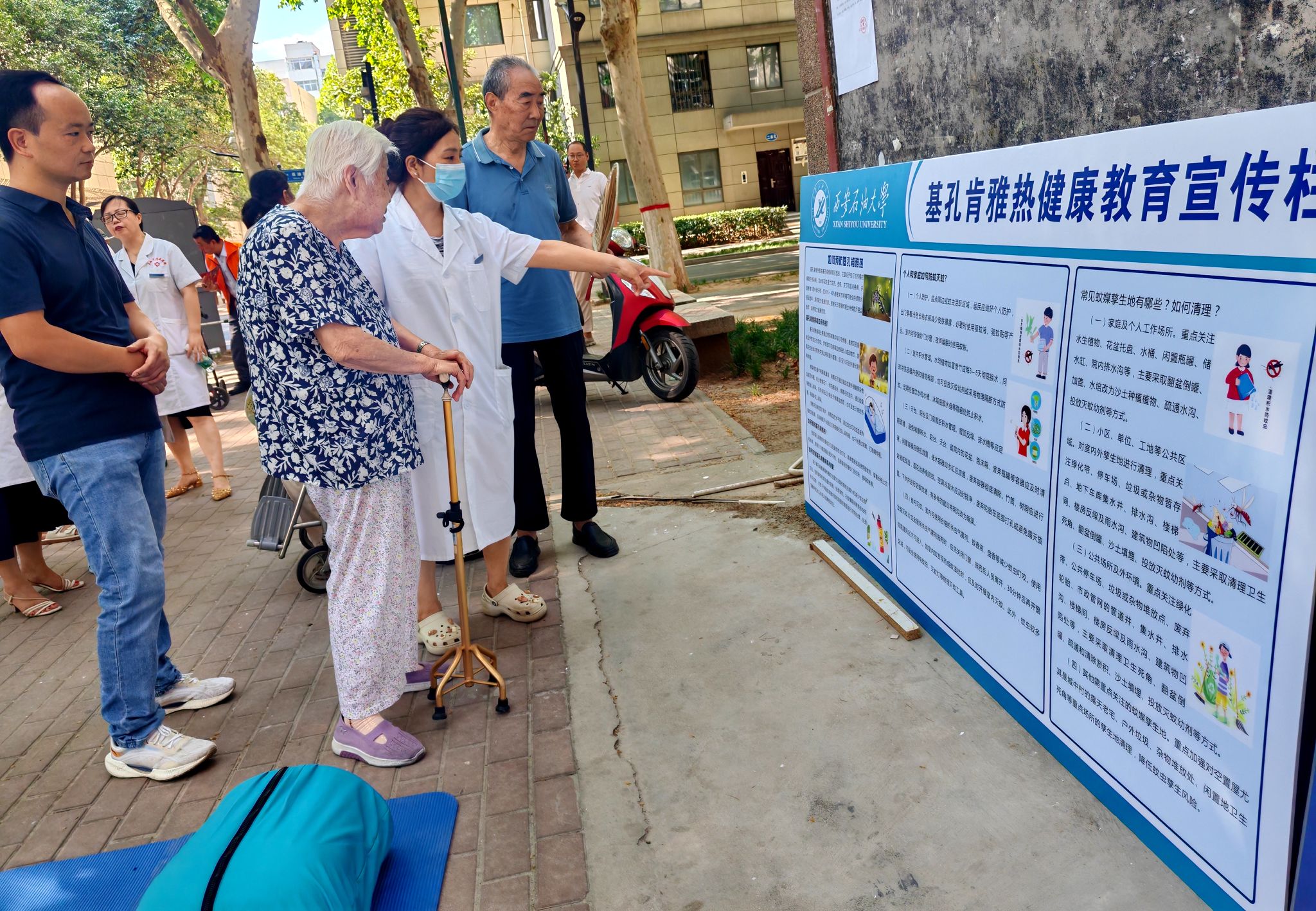 考虑到近期流行的蚊媒传染病基孔肯雅热,以及秋季高发的流感、手足口病等疾病,活动现场特别设置了科普展板与互动问答区。校医院公卫医师结合实际案例,深入浅出地讲解常见传染病的传播途径与防控方法。在防蚊灭蚊方面,医师给出了一系列科学合理的建议:及时清除家中及周边各类积水容器,定期更换花卉花瓶中的水,安装细密纱门纱窗阻挡蚊虫进入,合理使用蚊香、驱蚊液等防蚊用品,户外活动时尽量穿着浅色长袖衣裤,全方位从源头上杜绝蚊虫滋生,有效减少疾病传播风险。互动问答环节中,居民们踊跃提问,现场气氛十分活跃,大家你一言我一语,共同探讨健康话题,极大地加深了大家对传染病防治知识的理解与记忆,让健康意识深入人心