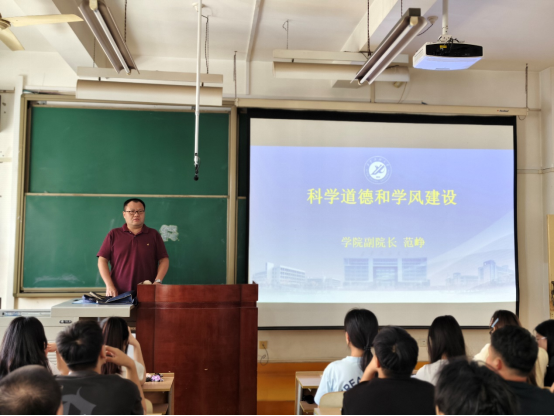 会上,范峥围绕“科学道德与学风建设”主题展开讲解。他结合学术领域典型案例,强调科学道德是科研工作的立身之本,学风建设是研究生培养的关键环节,引导新生树立严谨治学、诚信科研的学术观念,坚决抵制学术不端行为,为未来科研道路筑牢思想根基。