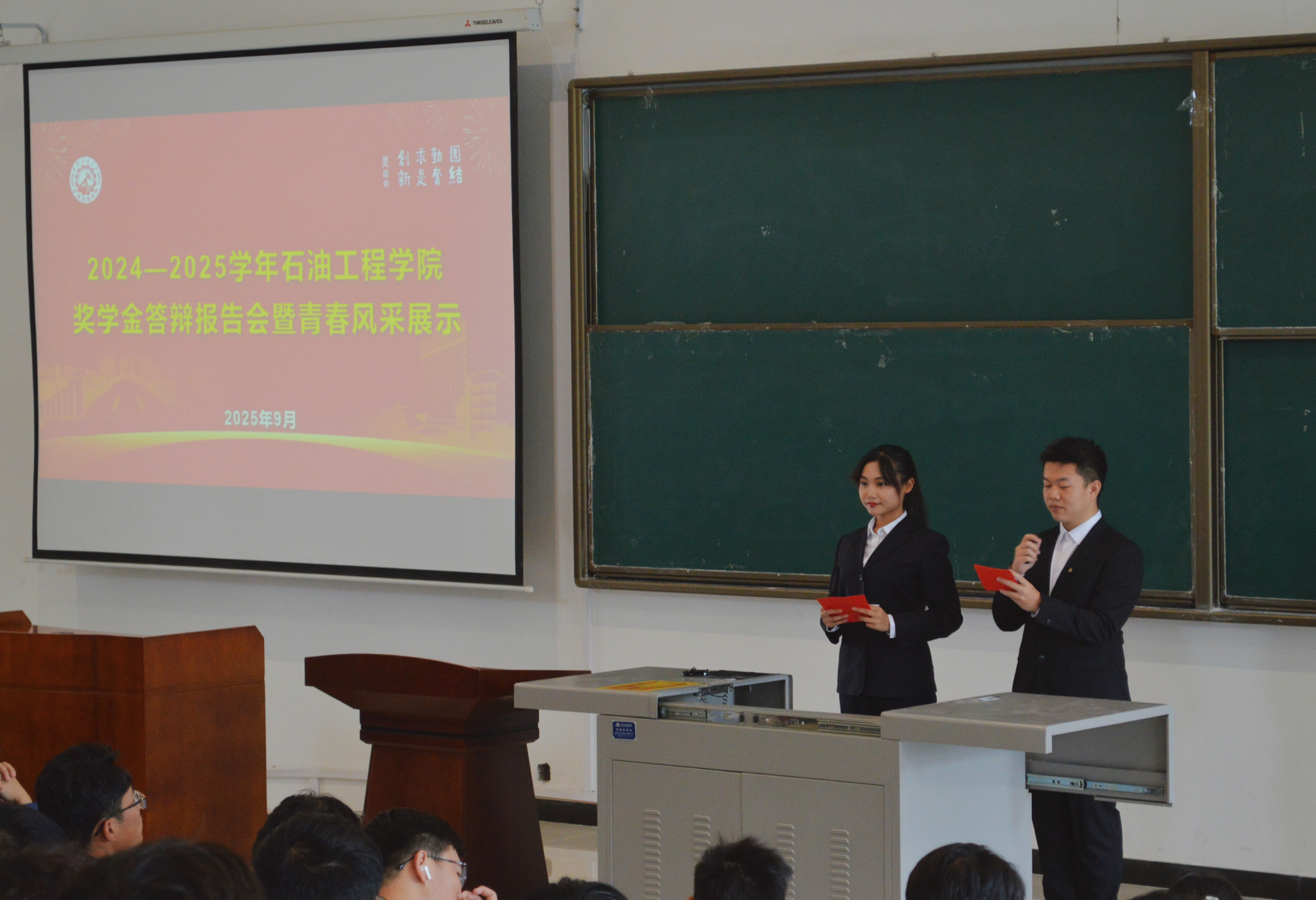 为深入贯彻落实陕西省教育厅关于国家奖学金评审工作的部署要求,充分发挥国家奖学金在人才培养中的激励导向作用,9月19日,石油工程学院在开物楼115教室成功举办2024-2025学年国家奖学金答辩评审会暨青春风采展示活动。学院党委书记司马文龙、学生工作办公室副主任史阳以及各年级辅导员出席,2025级全体新生共同参与。