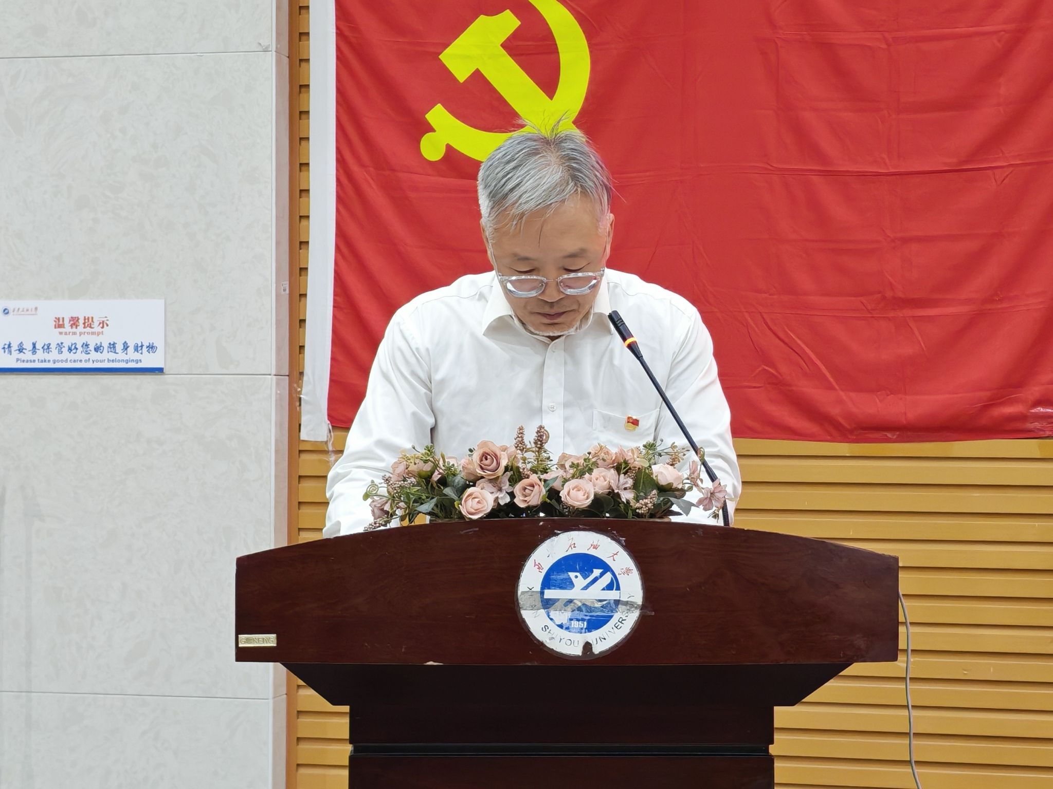 司马文龙、艾二鑫、宋兴淼为新一届各学生党支部授旗,艾二鑫为新一届学生党建办公室干部颁发聘书。