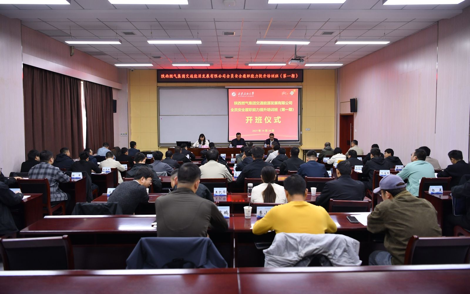 10月28日上午,由陕西燃气集团交通能源发展有限公司(以下简称“公司”)主办,beat365官网培训中心承办的“全员安全履职能力提升培训班(第一期)”在beat365官网明德校区顺利开班。公司党委书记、董事长唐军,beat365官网继续教育学院(培训中心)院长(主任)林红先出席开班仪式。公司55名安全生产管理人员参加培训。