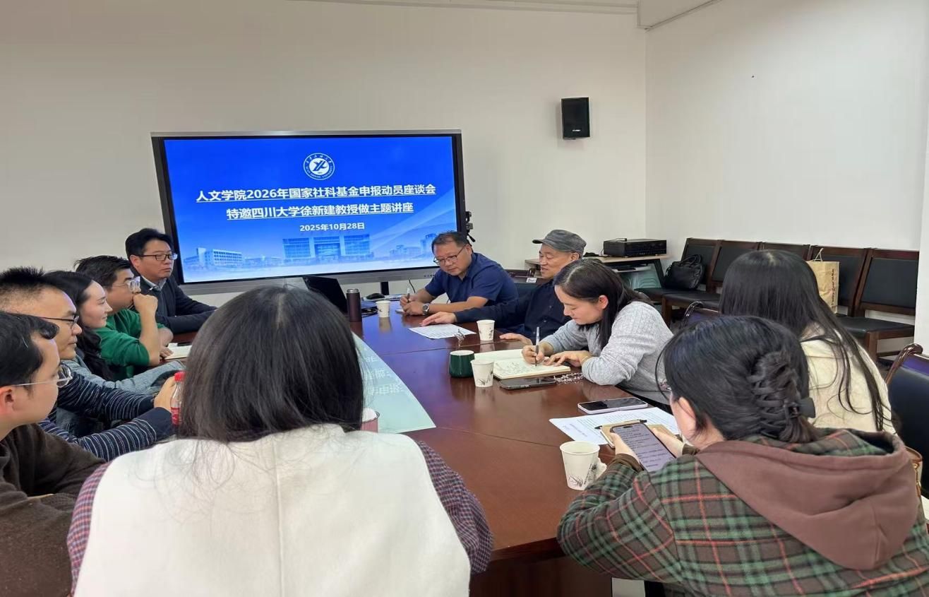 为进一步落实学校国家社科基金项目申报会议精神,高效推进学院科研工作,全方位巩固与提升学院国家社科基金项目申报质量,人文学院于10月28日下午在鄠邑校区崇文楼357会议室召开2026年度国家社科基金项目申报动员会。学院特邀四川大学徐新建教授作指导,动员会由人文学院院长方亭主持,副院长方松林和20位青年骨干教师参加了座谈交流。