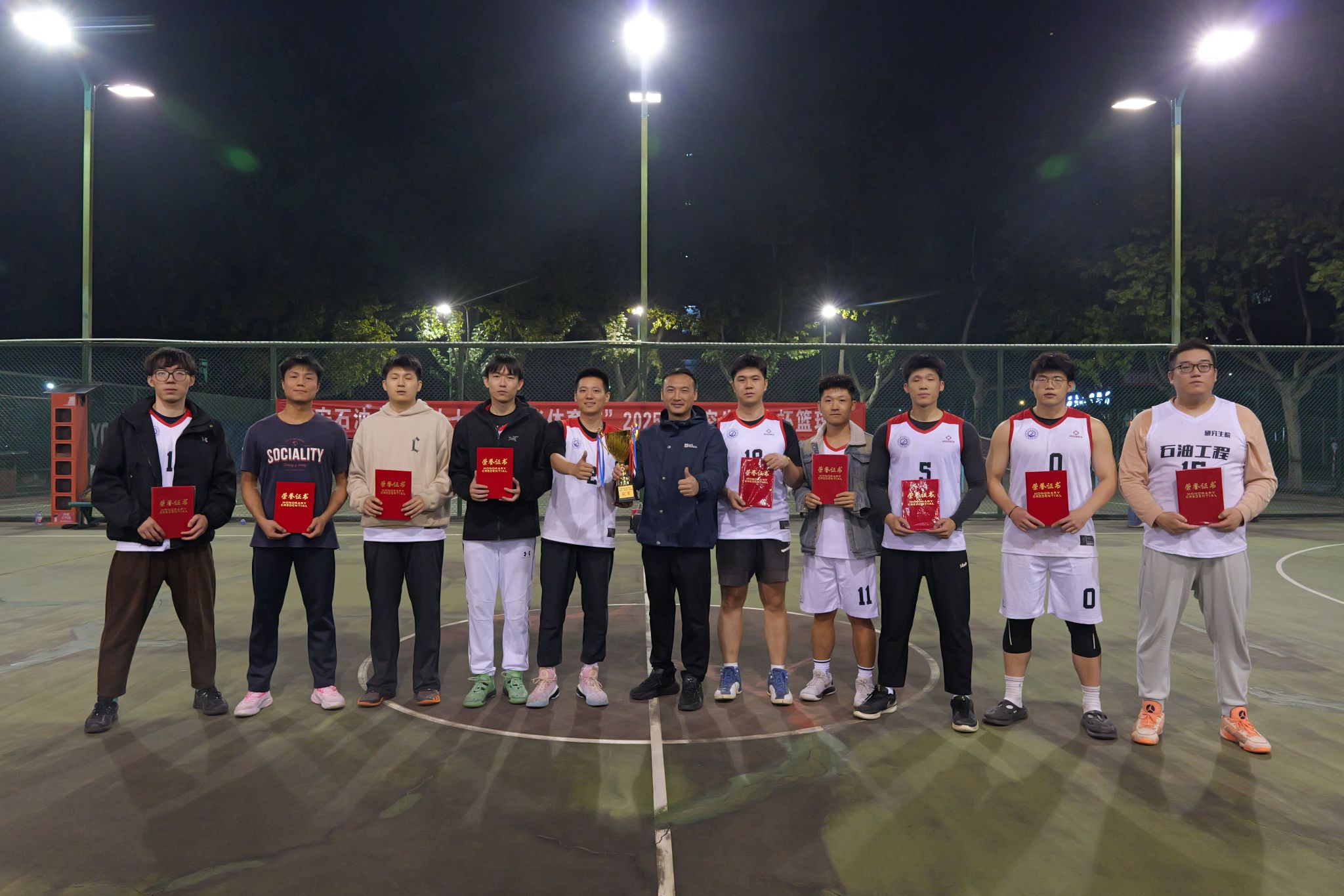 决赛当天,现场气氛热烈非凡,加油声、呐喊声此起彼伏。石油工程学院代表队与对手展开了一场巅峰对决。比赛伊始,双方你来我往,比分交替上升,场面一度陷入胶着。我院队员们毫不畏惧,始终保持专注,用顽强的防守和稳定的进攻回应对手的冲击。终场哨响,石油工程学院代表队领先2分成功夺冠。