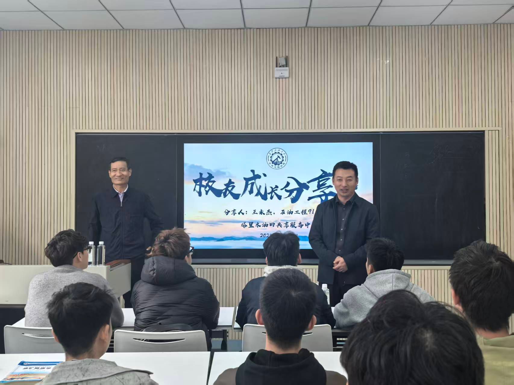 10月31日,学院邀请石油工程91届校友王永杰(现任塔里木油田共享服务中心主任),结合30余年行业经验和人生感悟,与2024级学生深入交流“大学成长与职业发展”;邀请2024届校友陈科棋(现任职中海石油天津分公司职员)以“海上油田操作工”为例,从学生工作、求职技巧到职业发展路径,为2023级学弟学妹提供贴近实际的“定制化”指导。
