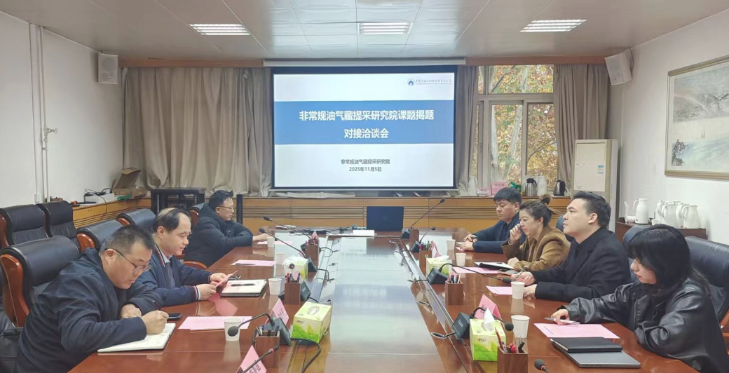 11月5日下午,西安石油大学-西安石油大油气科技有限公司共建非常规油气藏提采研究院科技攻关项目论证会在雁塔校区行政楼五层会议室举行,会议由化学化工学院党委书记孙会珠主持。西安石油大油气科技有限公司董事长邓鹏、副总经理李婷、首席技术顾问黄兆丰、科技管理中心主任张皓越、化学化工学院柯从玉教授、陈世军教授、李善建副教授参加了项目论证、技术对接与交流。