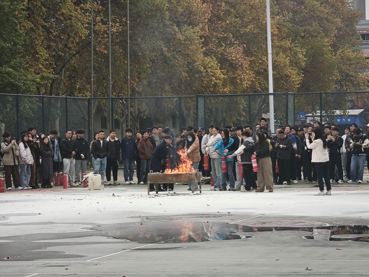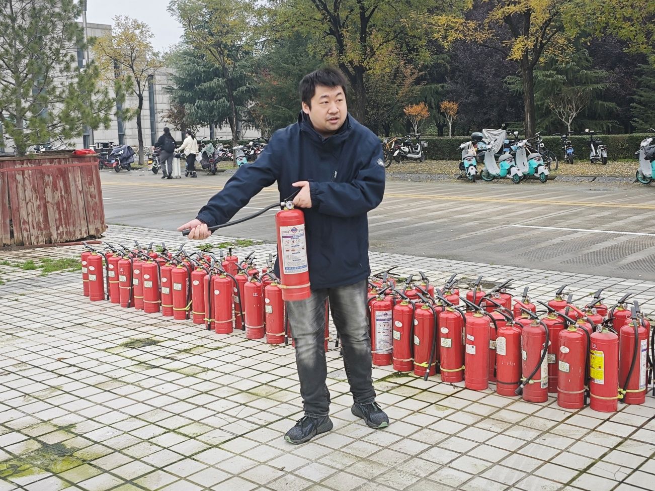 保卫处工作人员讲解了掌握灭火技能的重要性,灭火器的种类、工作原理、操作步骤以及使用过程中需要注意的细节,并演示了使用干粉灭火器扑灭初起火灾的操作方法和技巧。