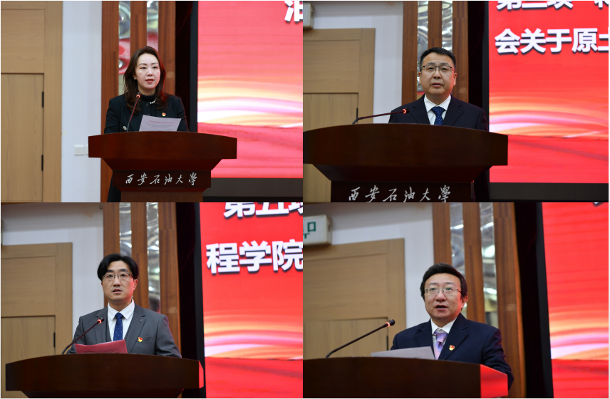 学院党委书记贾莉娜同志代表学院党委和纪委班子成员作表态发言。她指出,管道工程学院第一次全体党员大会,选举产生了第一届党委和纪委班子,这不仅是学院政治生活中的一件大事,更是学院发展新征程上的一个重要里程碑。这背后承载着的是组织的重托、同志们的期望以及学院未来发展的重任,学院党委和纪委将不辜负学校和全院师生员工的期望,以高度的政治责任感和使命感,认真履行好自己的职责,以更加饱满的热情、更加务实的作风、更加有力的措施,团结带领全院师生员工,不忘初心、牢记使命,砥砺前行、奋发有为,为实现学院高质量发展、为学校建设国内一流教学研究型大学的目标而努力奋斗。
