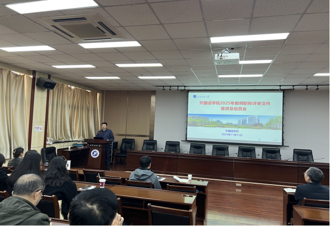 为切实帮助学院教师深入理解和准确把握职称评审文件精神,明确申报流程、评价标准及材料准备要求,确保后续职称申报工作有序高效推进,外国语学院于11月13日下午在雁塔校区会议中心第五会议室召开了学校“职称评审办法”宣讲及申报动员会。学院领导和全体教职工参加了此次会议。