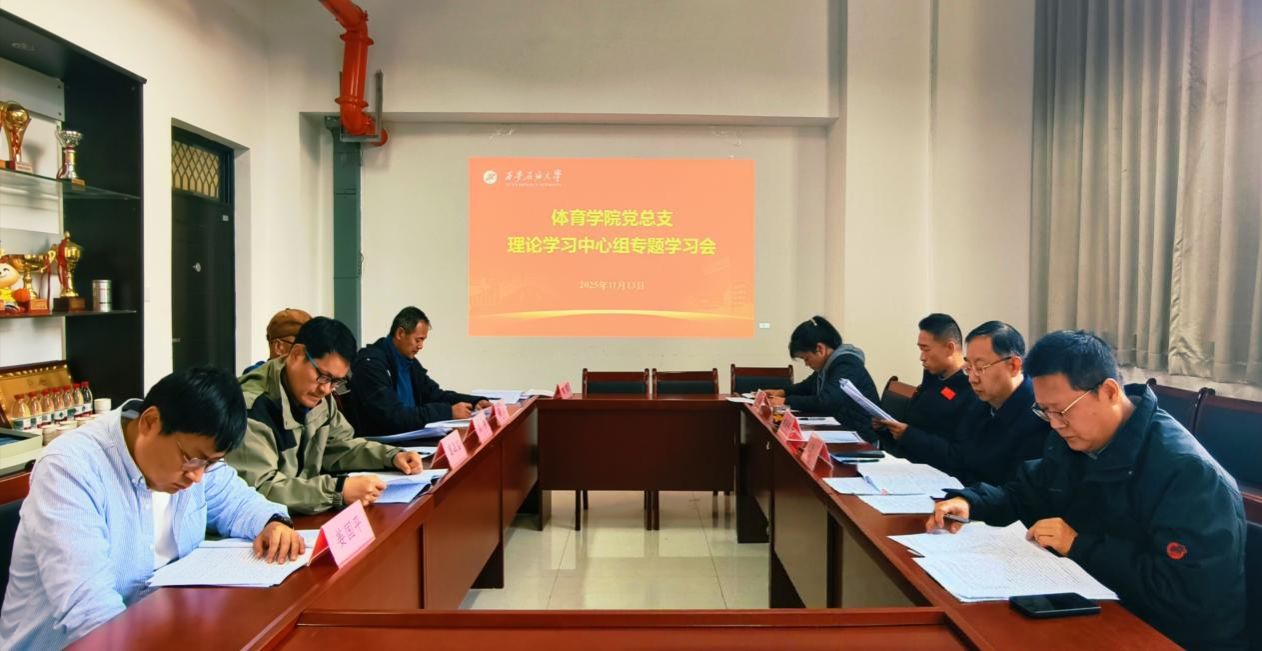 11月13日,体育学院在学院会议室召开理论中心组学习会,校党委委员、副校长种宇宏全程参与并指导学习,学院理论中心组全体成员参加学习,会议由体育学院党总支书记刘小波主持。