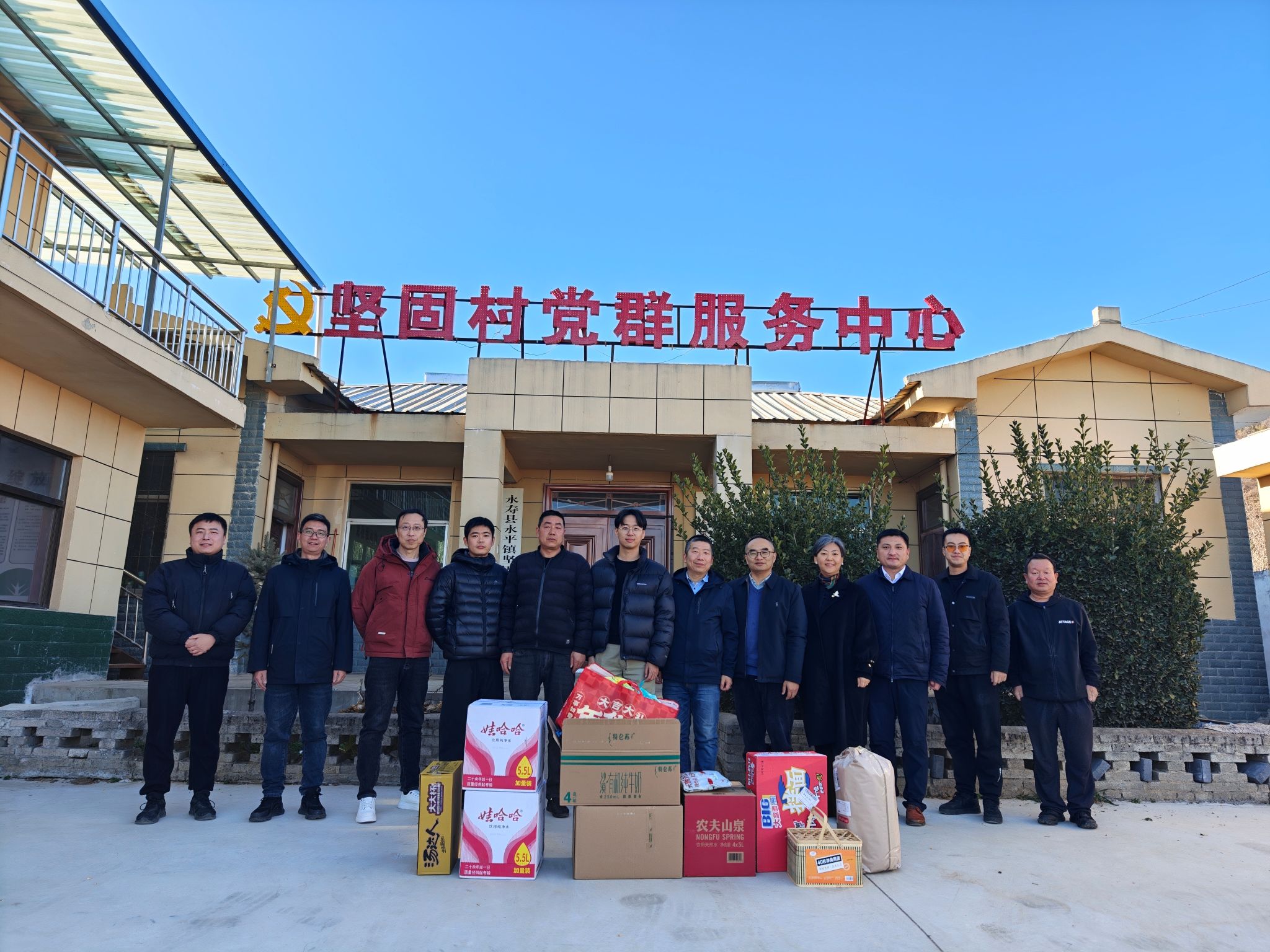 随后学院一行人来到坚固村党群服务中心,与地球科学与工程学院一行共同看望慰问了学校新选派的驻村干部姜英哲、姚谦、周健和贾飞,以及新选派的挂职干部李化杰,为驻村干部送去了所需的生活物资,详细询问了他们的工作生活情况,并与驻村干部进行了深入交流,了解乡村振兴工作推进成效及学院帮扶对象生产生活改善情况,对驻村干部扎根基层、担当奉献的精神给予诚挚慰问。