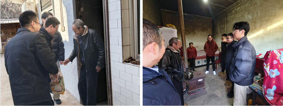 学院一行人在驻村干部的陪同下,前往对口帮扶户马秀理和肖军民家中,送上精心准备的面粉、大米、食用油等日常生活物资,刘雄详细询问了解帮扶户的生活现状、农作物收成和家庭收入等情况,提醒近期气温降低注意保暖,并鼓励帮扶户树立信心,早日过上富裕安康的生活。