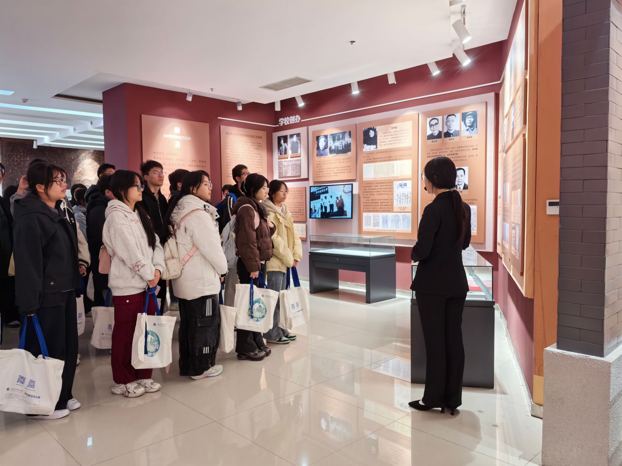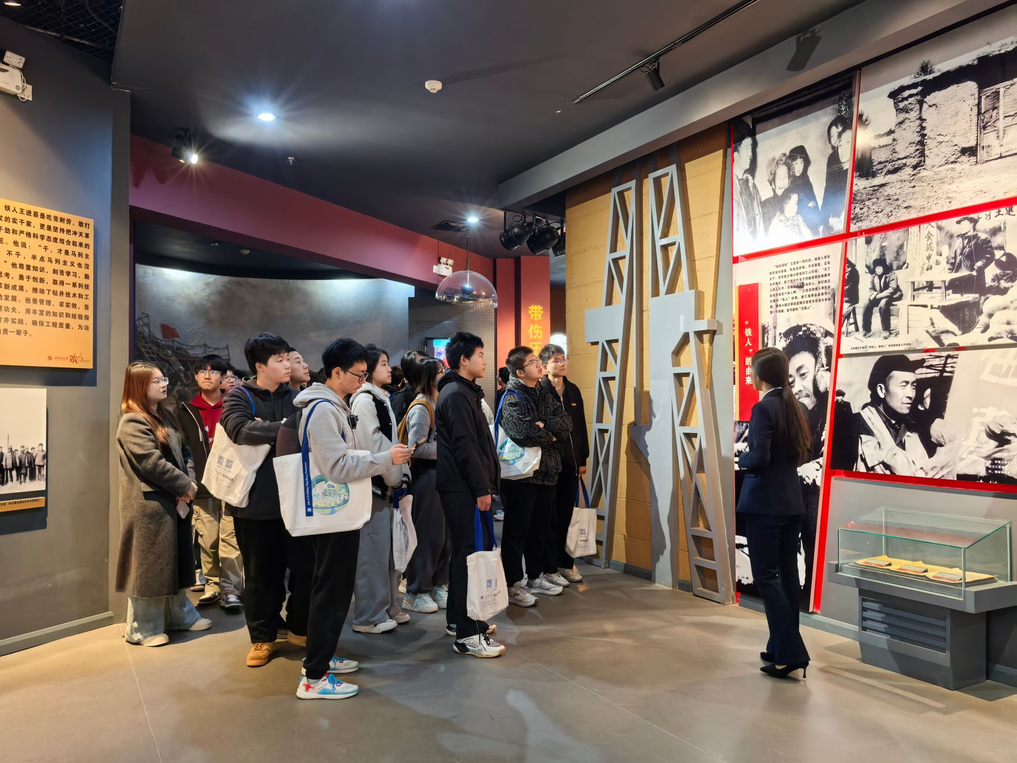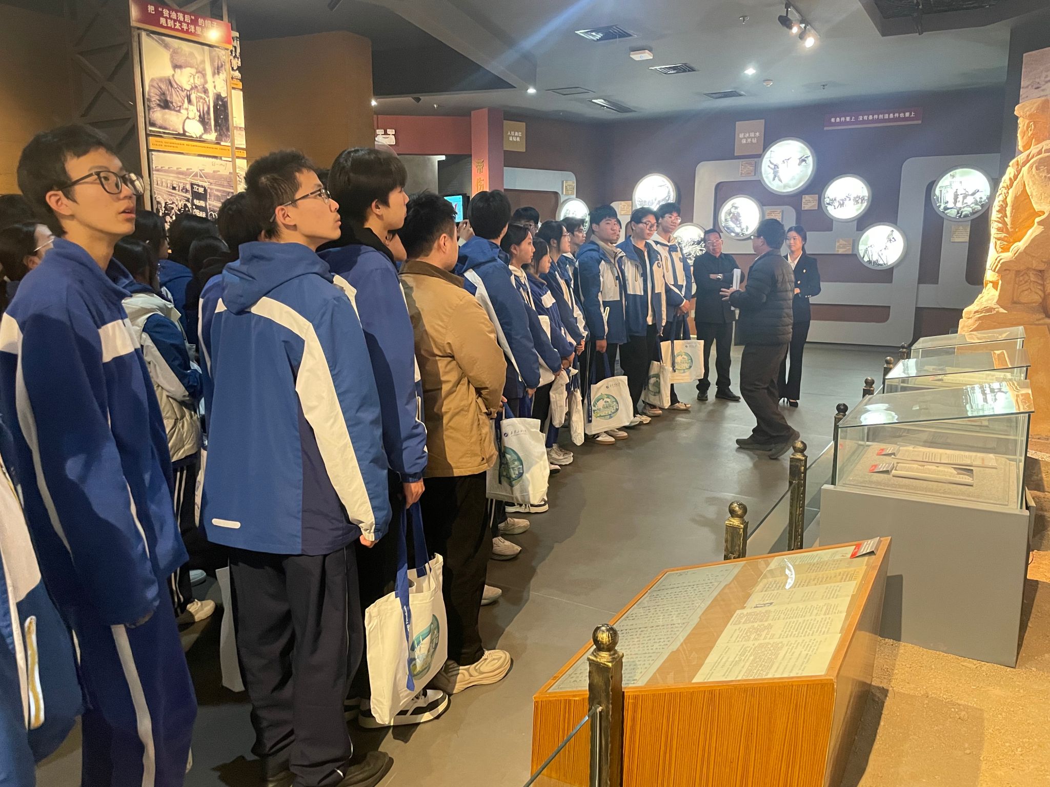 研学活动第一站首先来到校史馆和铁人纪念馆。在铁人纪念馆,通过讲解员细致的讲解,结合一幅幅珍贵的照片、一件件实物展品,五高师生深切感受了铁人的不凡人生历程,深刻领悟了铁人精神的内涵。在校史馆,跟随讲解员的步伐,五高师生认真聆听了学校的建设发展历程,透过一个个展板,一件件历史实物,大家学习了先辈们筚路蓝缕艰苦办学的奋斗精神,专家学者潜心育人的优秀事迹和毕业生扎根祖国大地回馈社会的爱国情怀,深切感受到beat365官网的校园文化和学习氛围,也激发起内心对大学生活的向往和憧憬。