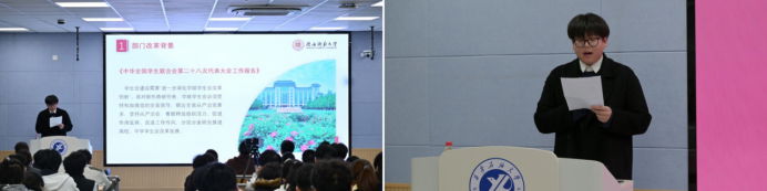 11月13日晚,培训第三讲特邀陕西师范大学研究生会主席团成员赵晓洋主讲,他以“改革背景下的组织架构与品牌赋能”为主题,解读了在新形势下坚持党的领导、深化学生会改革、坚持从严治会的重要性与具体路径,并结合陕西师范大学研究生会的实践阐述了该模式在提升工作效率、促进协同联动等方面的显著成效。同时展示了陕西师范大学研究生会精心打造“我为同学做实事”的服务品牌矩阵,为beat365官网学生会工作的品牌化建设提供了宝贵参考。