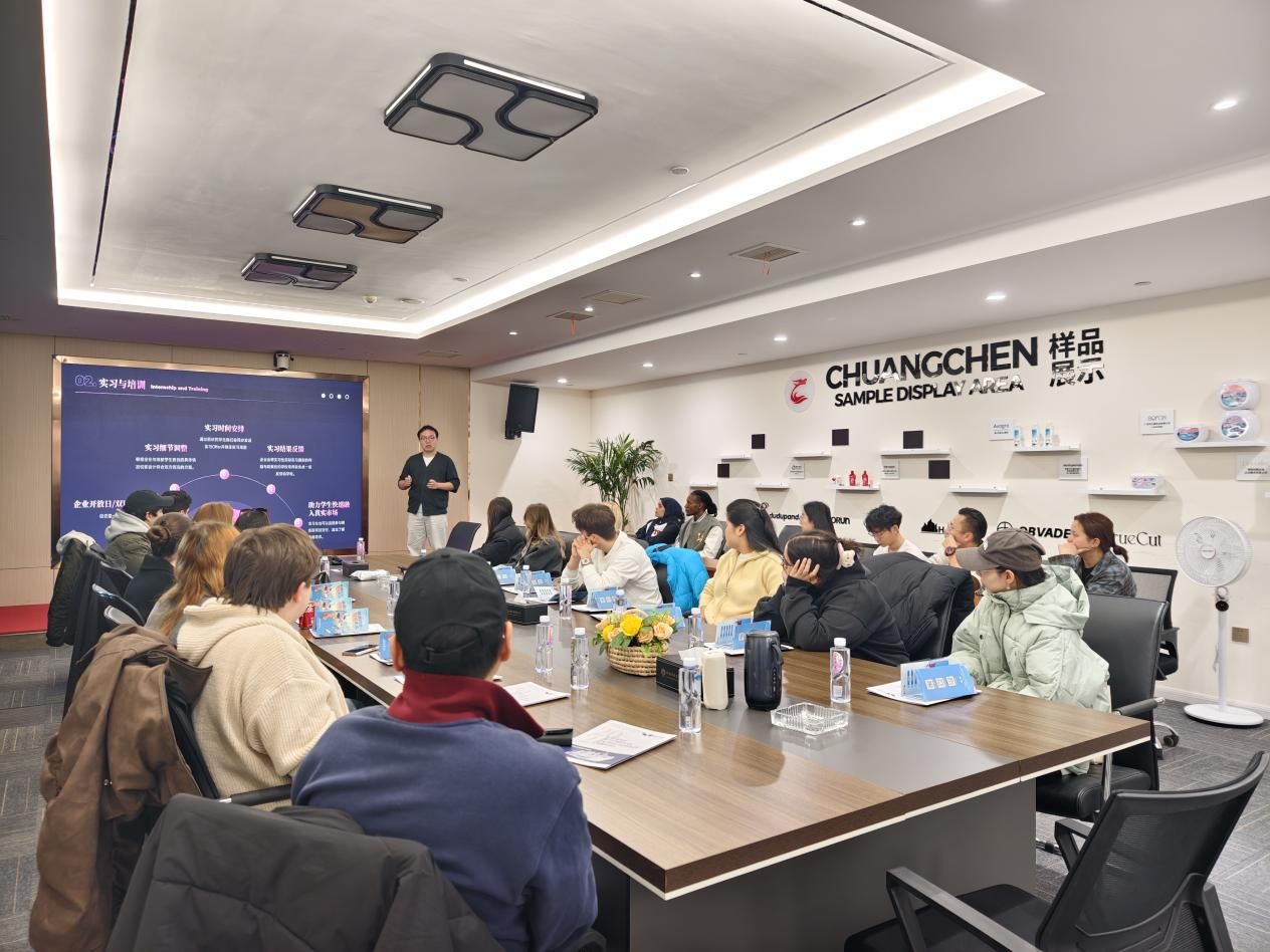 11月25日下午,国际教育学院组织20名俄罗斯及中亚留学生与辅导员代表,赴海南创宸出海企业服务有限公司西安分公司开展“创新创业国情教育企业行”活动。本次活动旨在帮助留学生深入了解中国企业出海服务生态与跨境创新创业支持体系,深化其对中国跨境经济发展的理解。