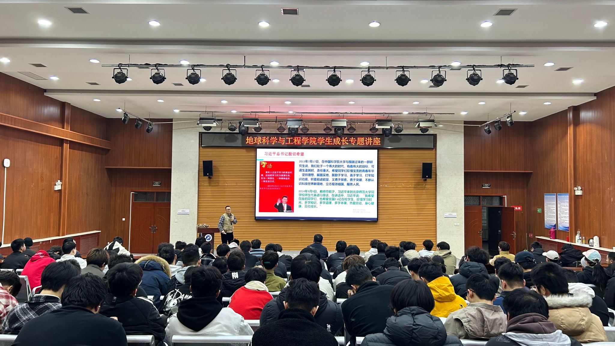 为深入贯彻落实新时代立德树人根本任务,引导学生树立远大志向、明确奋斗目标,11月25日晚,地球科学与工程学院在鄠邑校区崇文楼118报告厅举办学生成长专题讲座。中国产学研合作促进会党委委员、教育部高等学校地质类专业教学指导委员会副主任刘玉强教授应邀作“刻苦学习、坚持努力、实现理想”讲座,学院党委副书记董丙剑主持,学院2025级本科生参加大会。