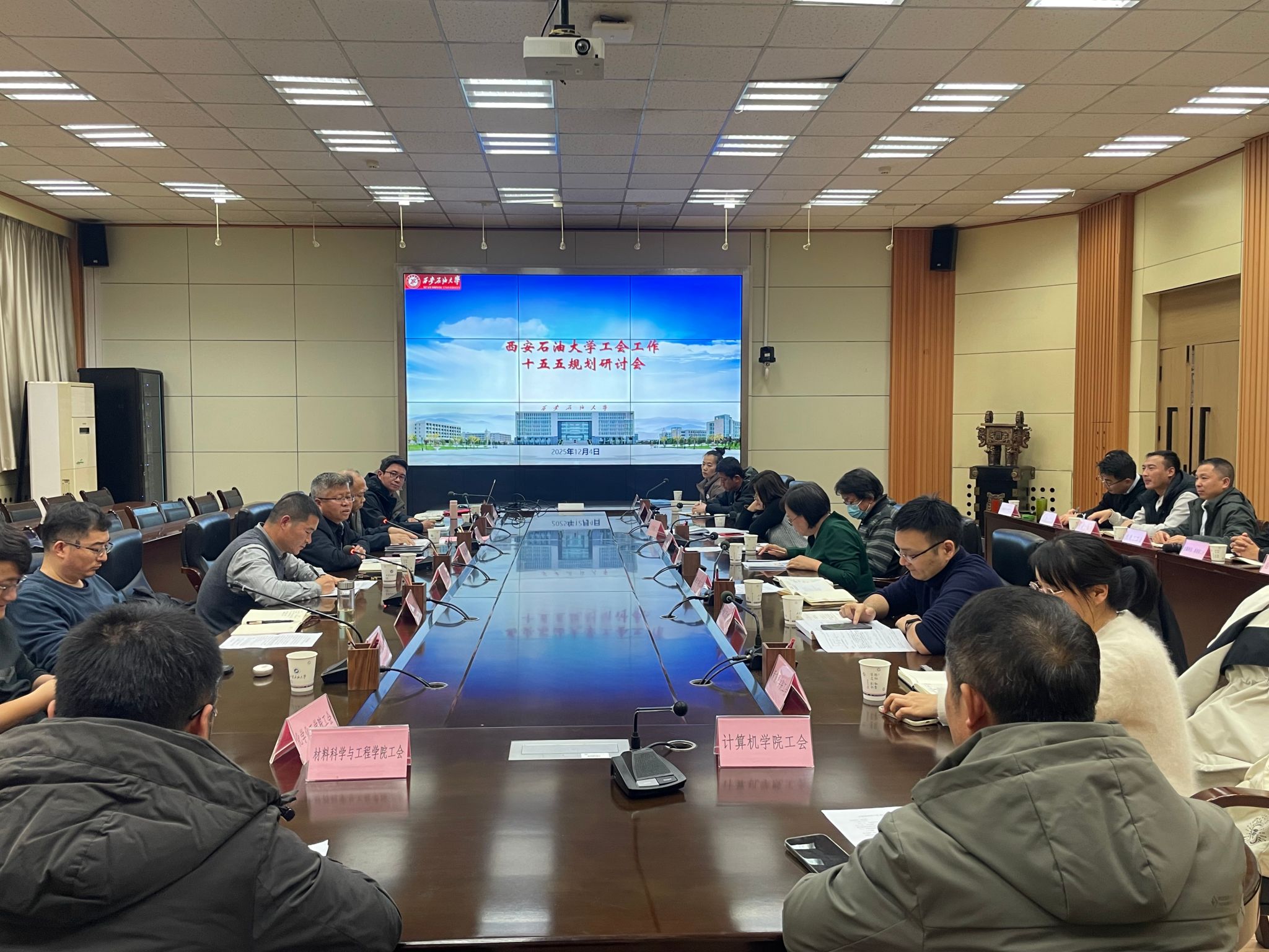 12月4日下午,beat365正版唯一官网工会工作暨“十五五”规划研讨会在雁塔校区第二会议室召开。副校长张骁勇、校工会主席吴民生、校工会副主席王钧、校工会委员会委员以及部门工会主席、委员参加了会议。会议由王钧主持。