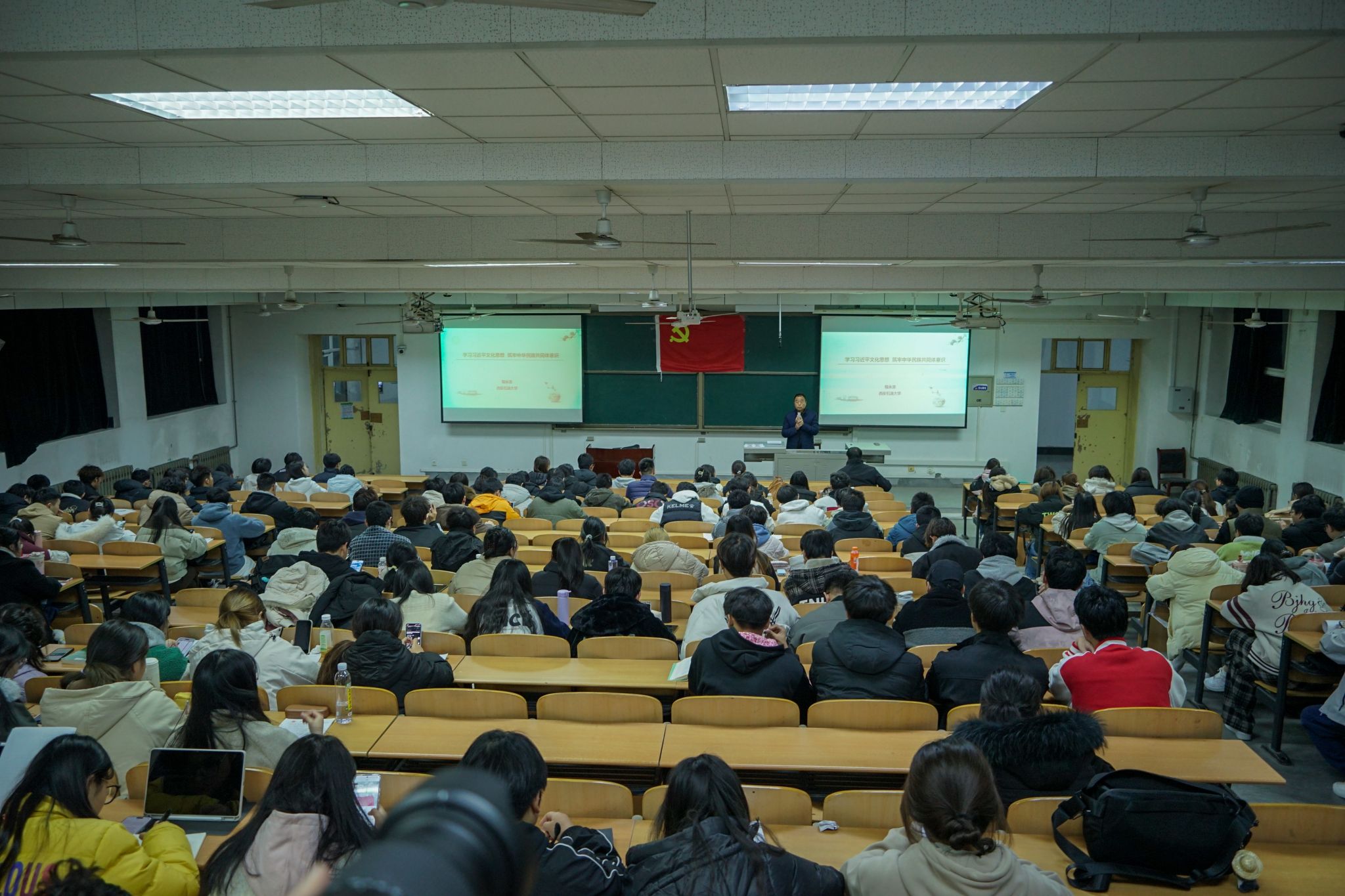 为深入贯彻落实党的二十届四中全会精神,坚持以习近平文化思想铸魂育人,12月8日晚,理学院、体育学院、音乐系、区域国别研究院在鄠邑校区博览楼134教室联合举办第二十期入党积极分子培训班第四讲。校党委副书记程永清应邀讲授了题为《学习习近平文化思想 铸牢中华民族共同体意识》的专题党课,280余名入党积极分子参加。