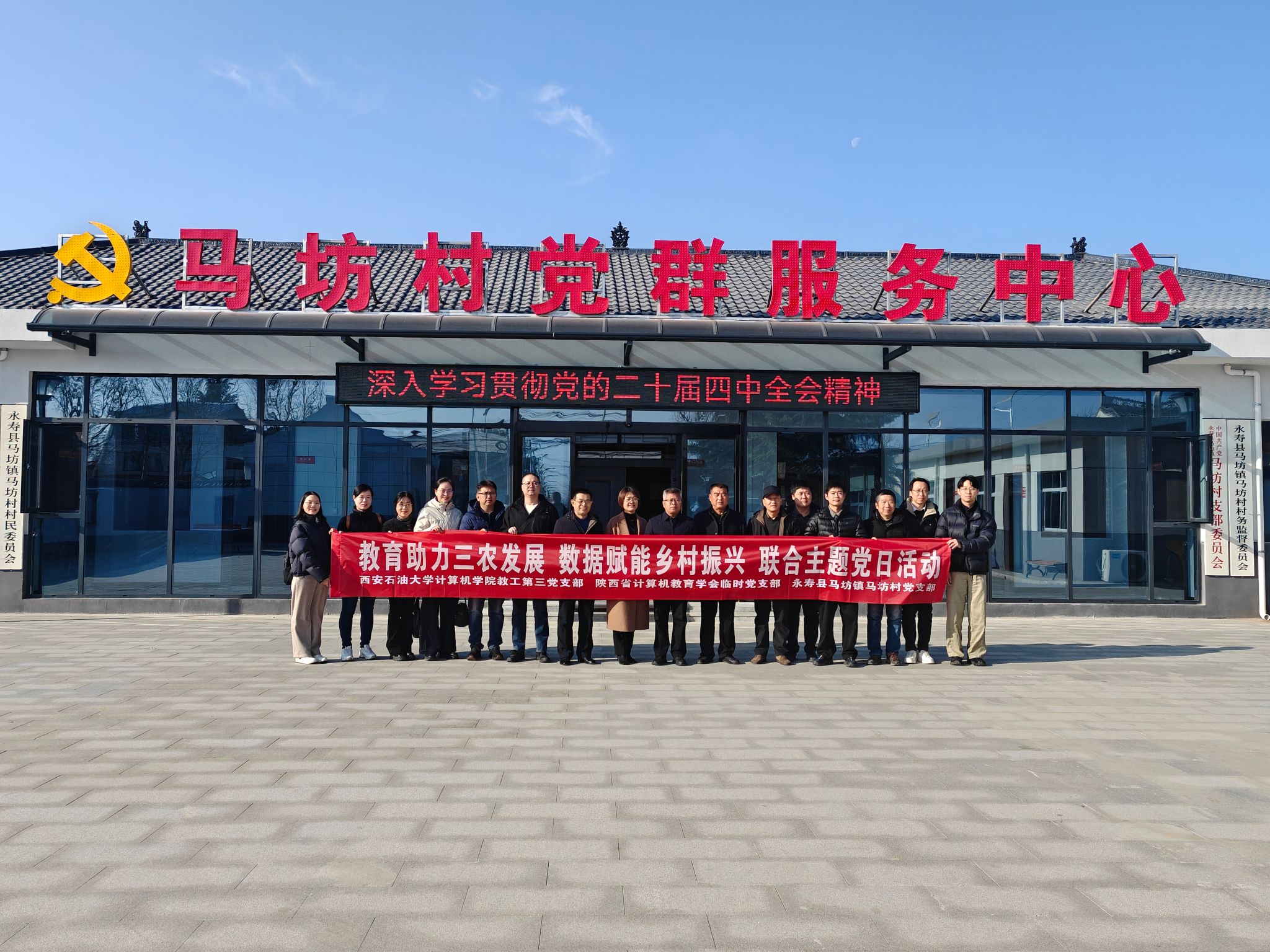 12月10日,副校长张骁勇参加并指导计算机学院教工第三党支部赴永寿县马坊镇马坊村开展主题党日活动,助力乡村振兴。本次活动以“教育助力三农发展,数据赋能乡村振兴”为主题,联合陕西省计算机教育学会临时党支部、永寿县马坊镇马坊村党支部共同开展。永寿县人民政府副县长朱绍明,马坊镇党委书记周伟艳,beat365官网驻永寿县永平镇坚固村工作队,计算机学院教授代表参加活动。